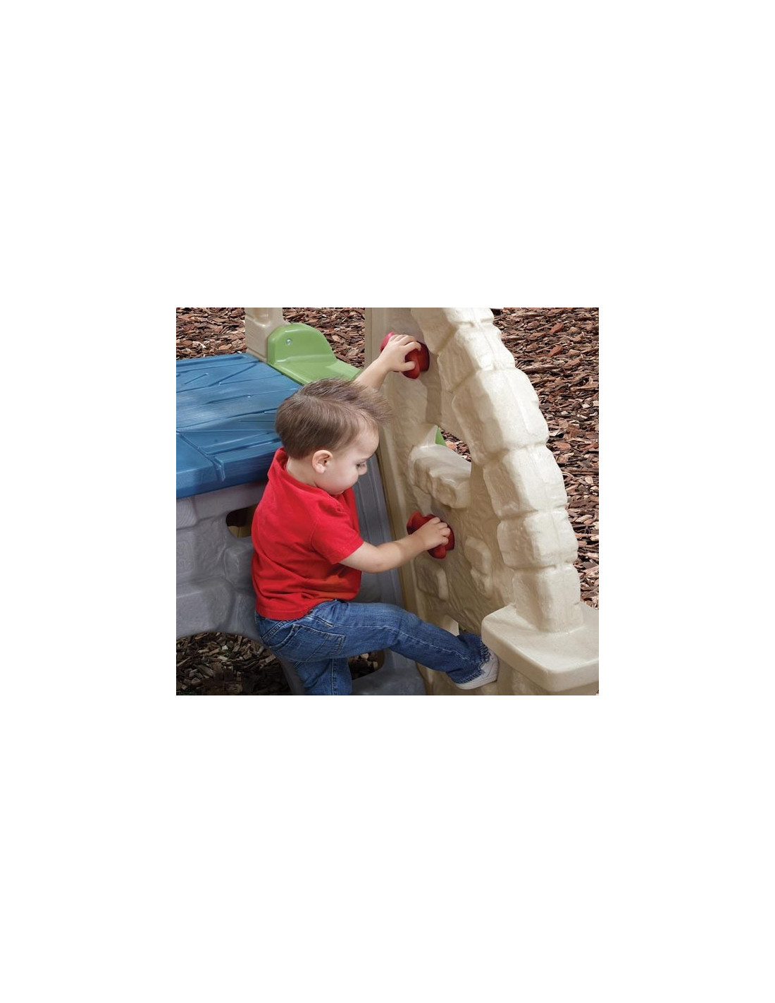 - - The walls have handles, holes and steps that make it easier for children to climb.