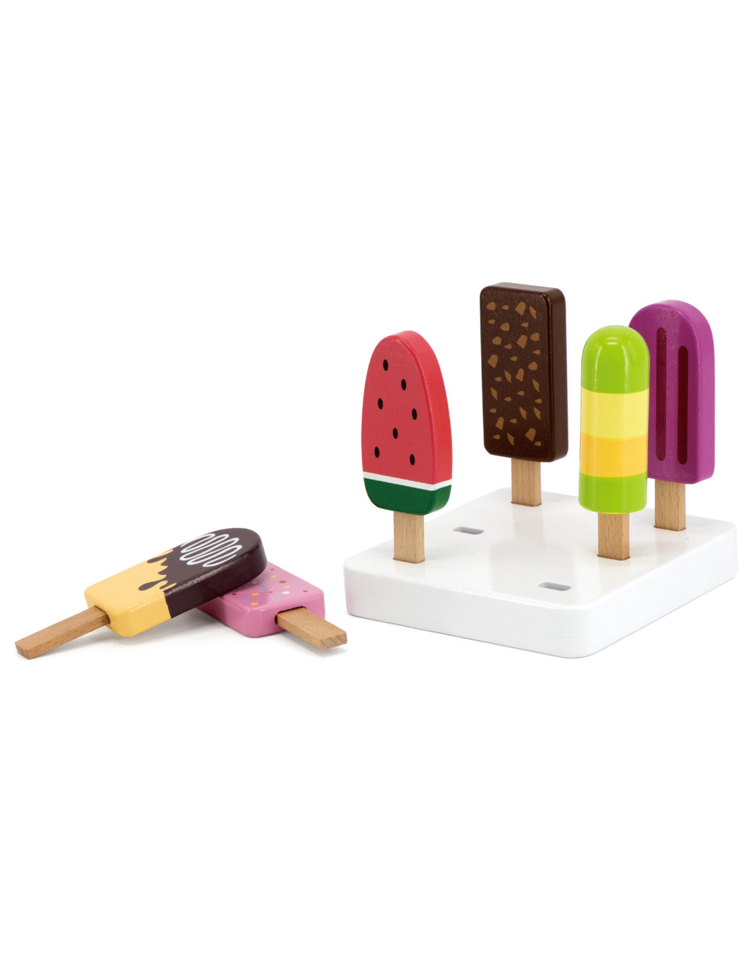 - - the ice cream is placed on a wooden stand, ideal for storage and display,