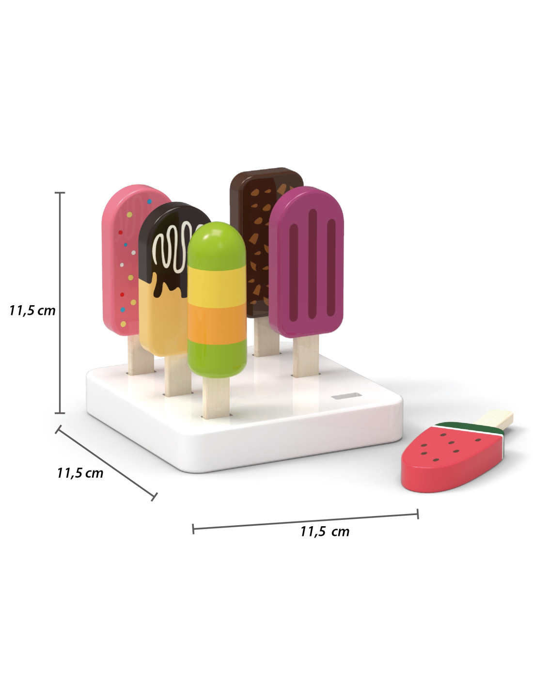 A wooden set of six ice cream cones, perfect for dessert on a hot day. The ice cream comes in beautiful, delicious colors and is crafted with meticulous attention to detail. This wooden set is perfect for playing shop or as an accessory for a child's kitchen. Excellent quality, charming colors, practicality, and functionality. Playing house, playing shop, and imitating adult roles are creative ways to build social relationships, develop and learn vocabulary.
