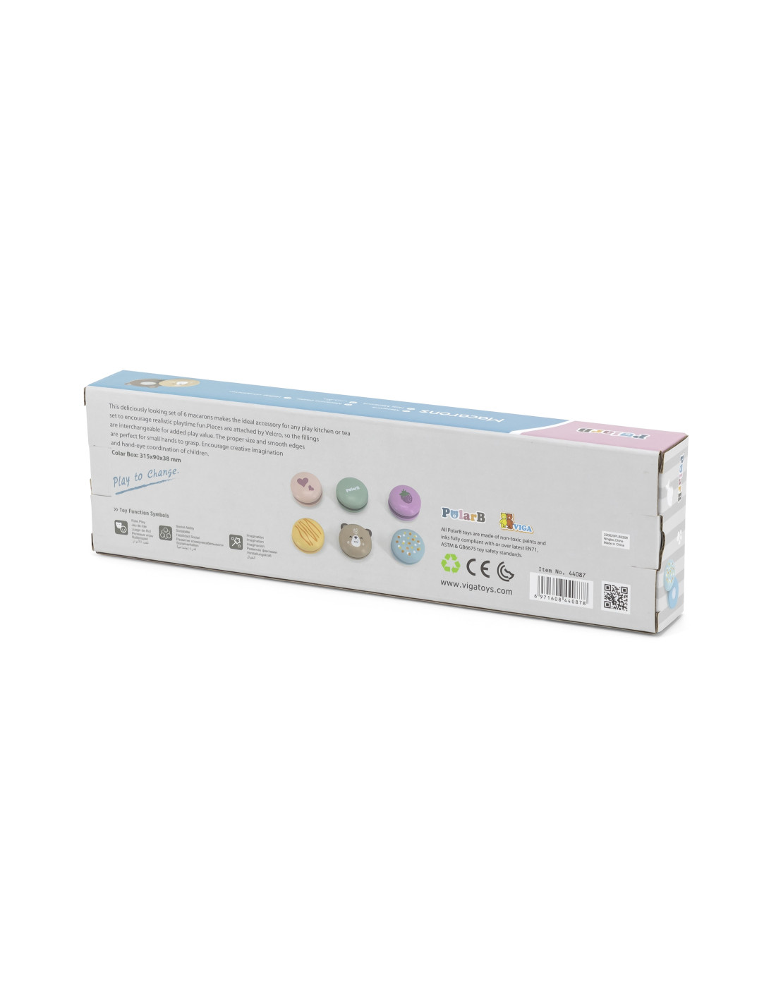 The Viga PolarB Wooden Macaroon Set is one of the leading toys that will allow children to enter the world of interesting and creative play. The macaroon pieces are attached to each other with Velcro, so children can combine them in any way they like, creating their own "delicacies."