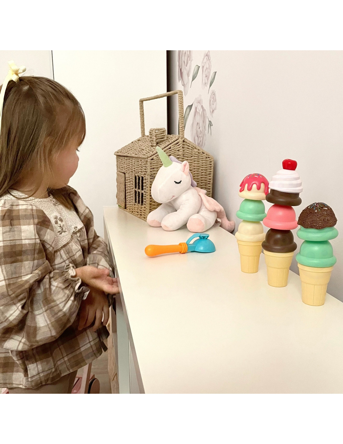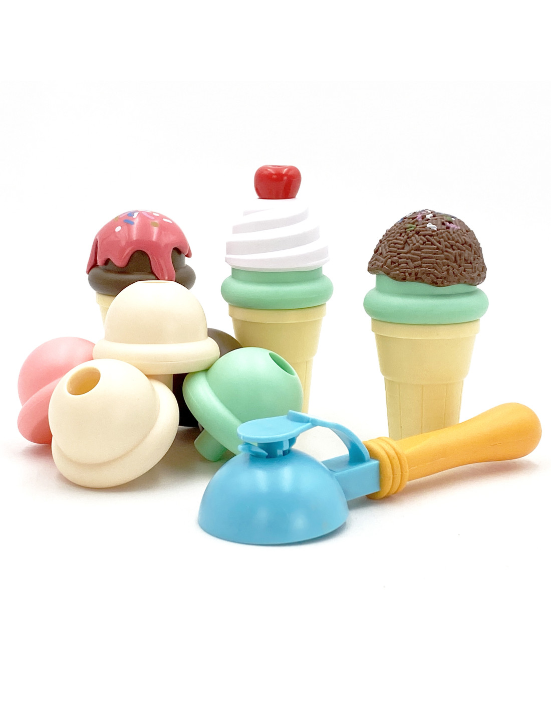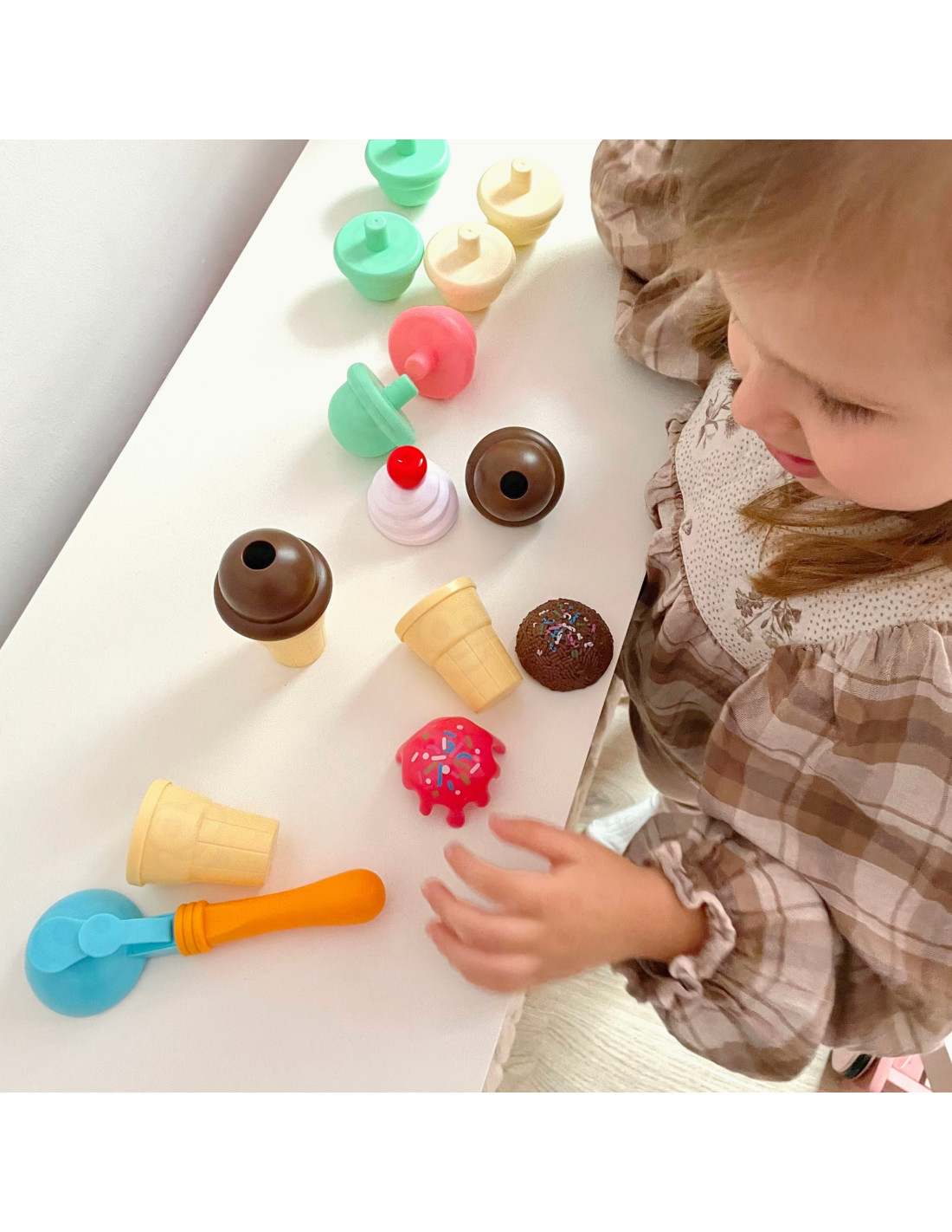 The WOOPIE Ice Cream Maker Set will let your child feel like a real pastry chef. The set includes wafers, balls, a scooper, and extra toppings. Children take a wafer, place a scoop of their choice on the spoon , and arrange it however they like. This simple game will develop your child's imagination and creativity . Children can take on the roles of pastry chef and customer with friends or family.