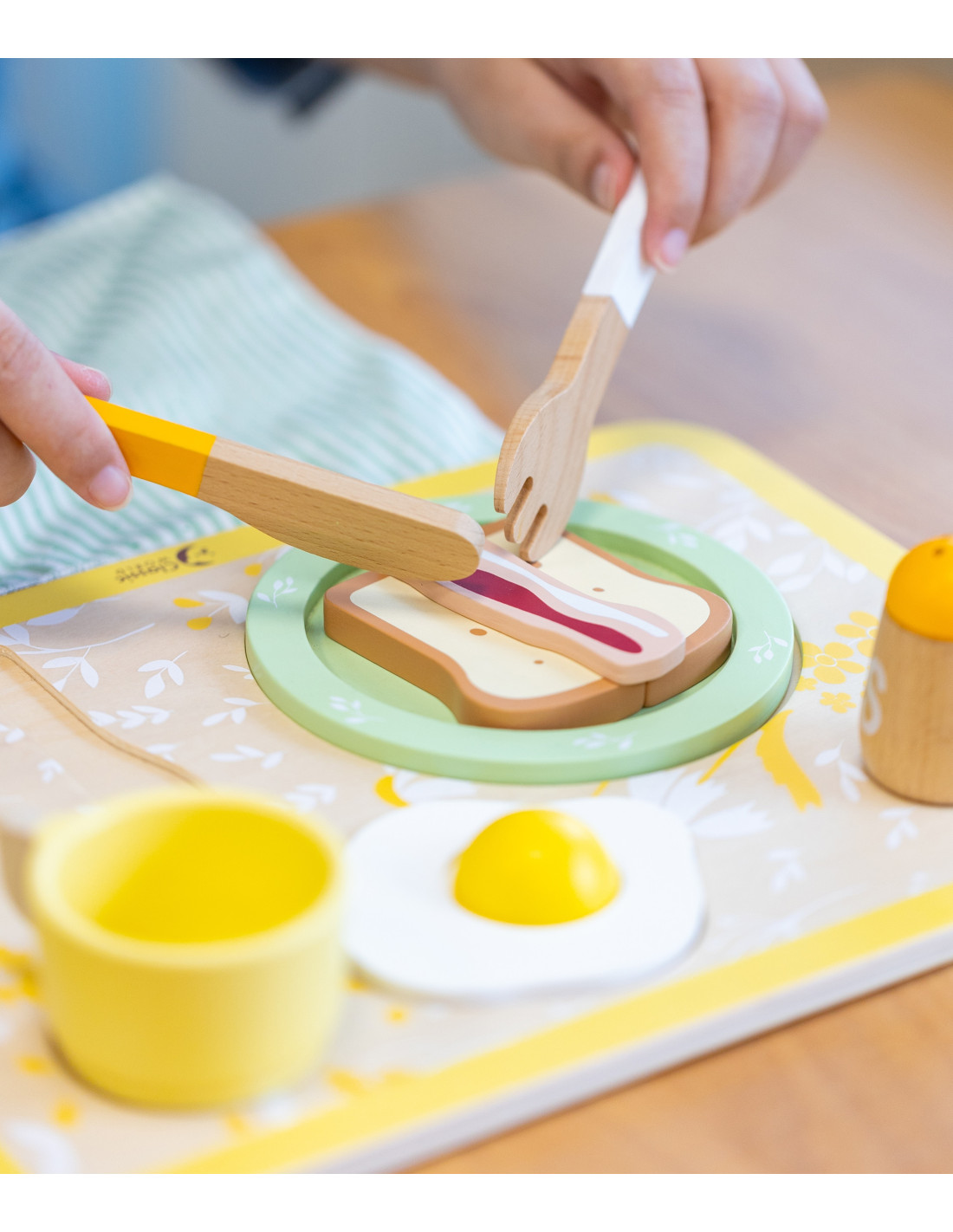 The Breakfast Set from CLASSIC WORLD will provide your child with energy throughout the day and will perfectly stimulate their creativity. The set includes a separate poached egg, toast, and bacon, a knife and fork, and more . It can offer many fun ideas and also help cultivate good table manners in children.