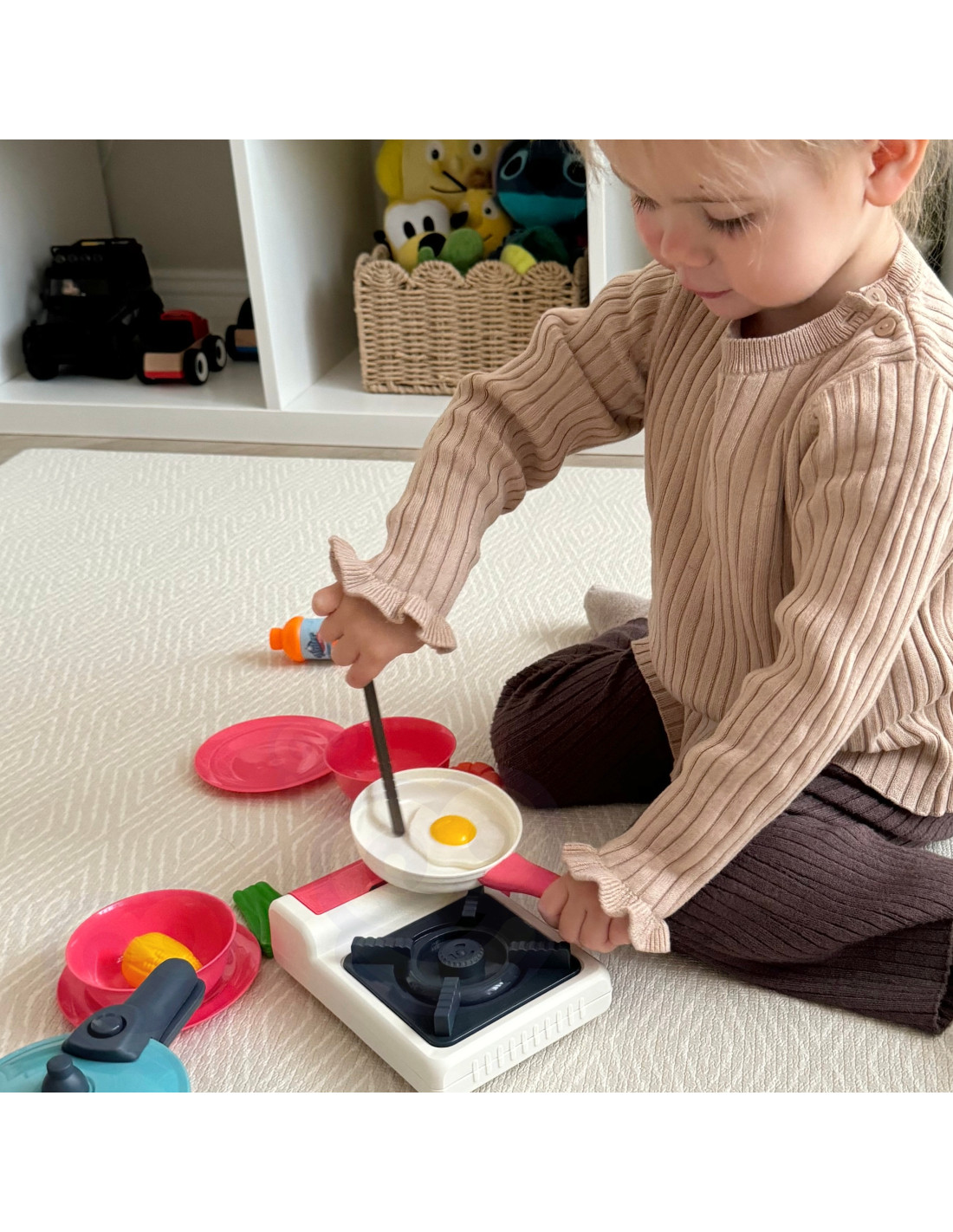 Kitchen sets from the WOOPIE brand are a wonderful toy that lets little ones take on the role of a little chef. They offer many opportunities for creative and educational play. Children's kitchen sets include a variety of accessories, such as plates, a bowl, a kettle, and a frying pan with a lid. This allows for hours of creative play, developing manual skills and imagination. Cooking together can be truly fun! However, before your little one starts helping you in the real kitchen, it's a good idea to familiarize them with everything through play!