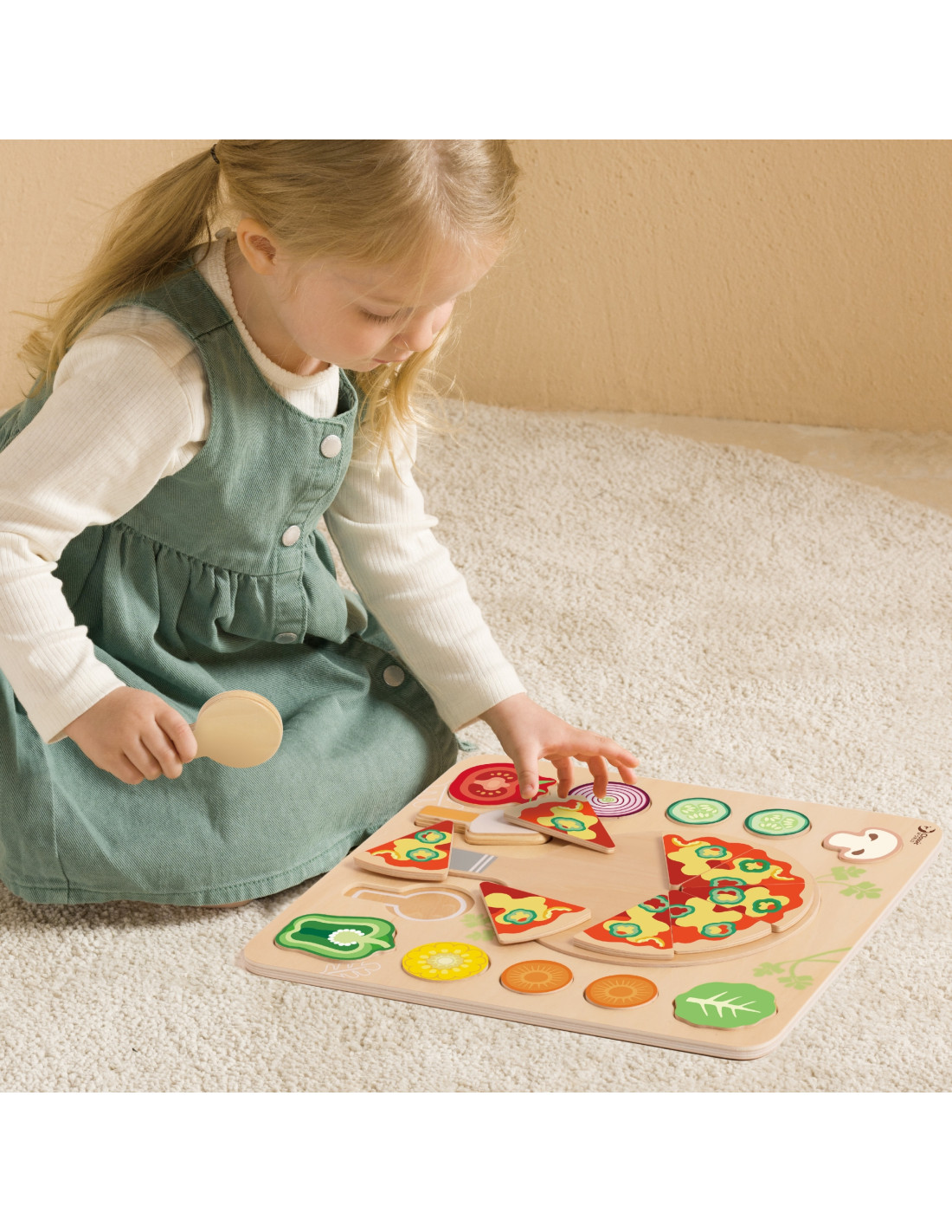 Welcome to a world of flavor and creative fun! The "Pizza Puzzle Board" wooden puzzle is the perfect toy for little chefs. Thanks to the colorful ingredients, children can create their own pizza creations, developing their imagination, manual dexterity, and hand-eye coordination.
