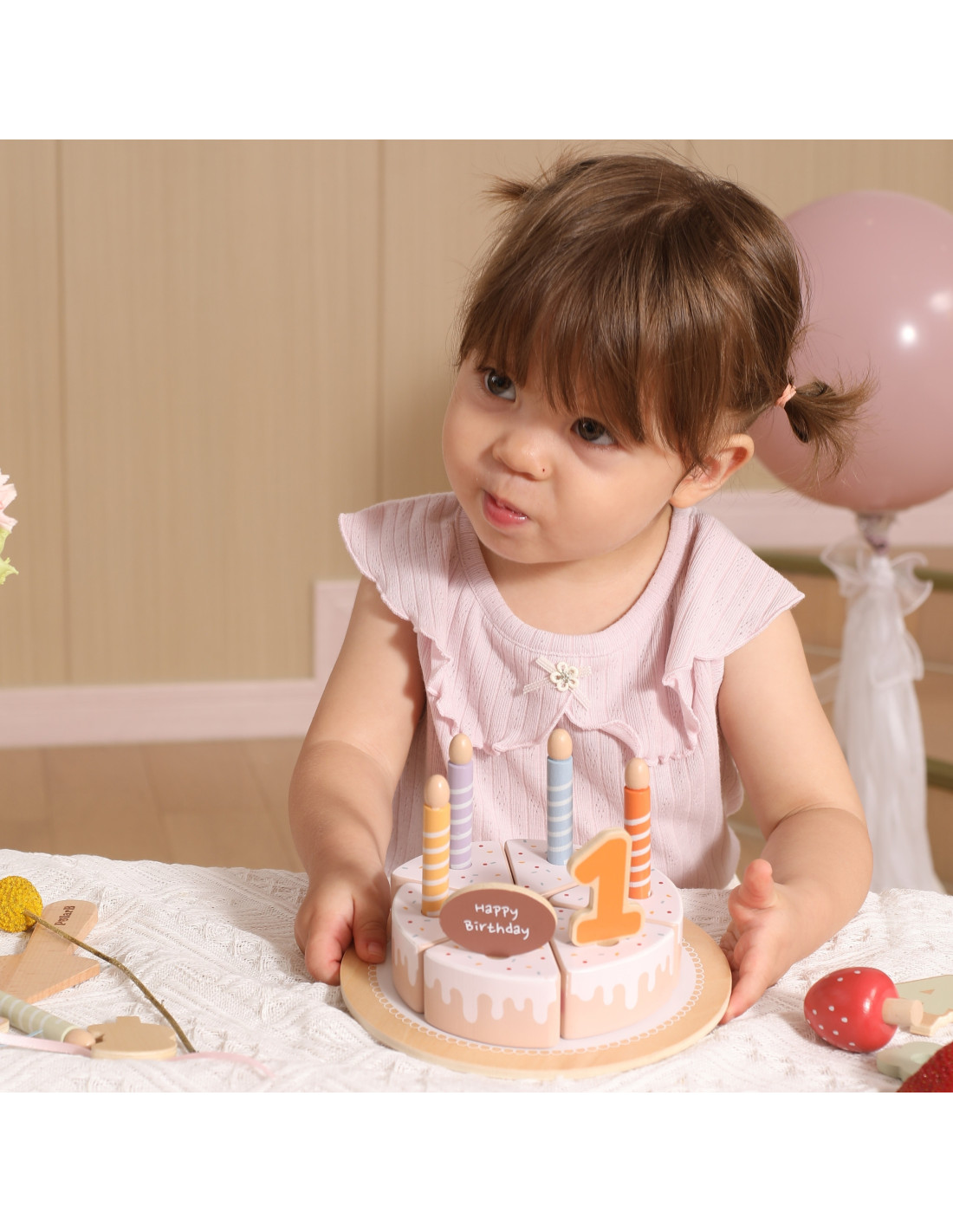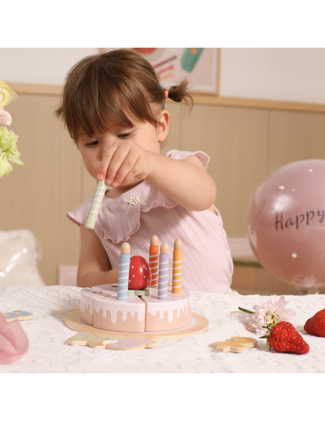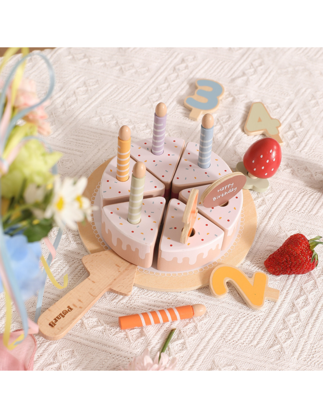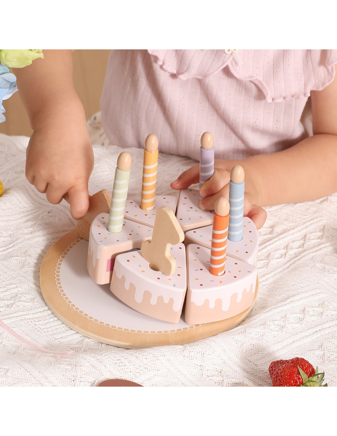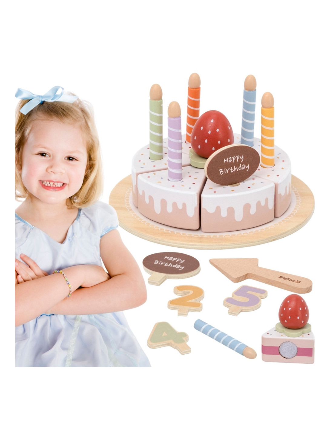 The Wooden Birthday Cake from Viga is a unique set that will make any party unforgettable! It consists of realistic elements like cake slices, candles, and decorations that can be arranged however you like. Thanks to the Velcro fasteners, your little one can easily cut and connect the pieces, learning cooperation and sharing while having fun together. It's the perfect addition to kitchen games, birthday parties, and get-togethers with family and friends .
