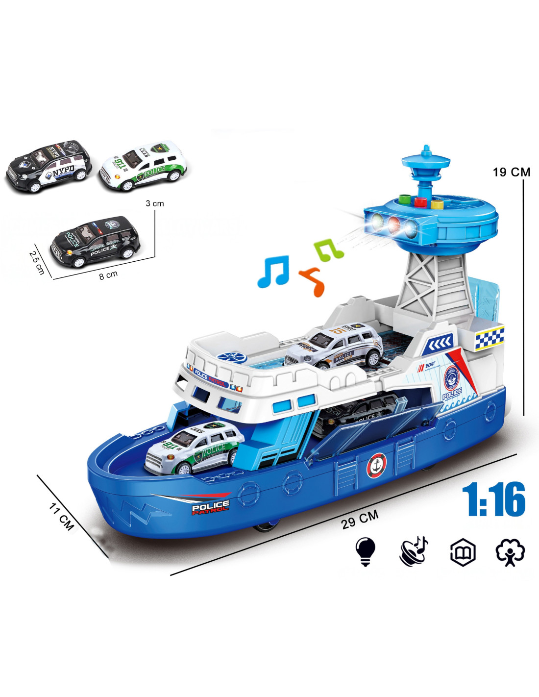 WOOPIE Interactive Police Patrol Boat - Scale 1:16 + 3 cars