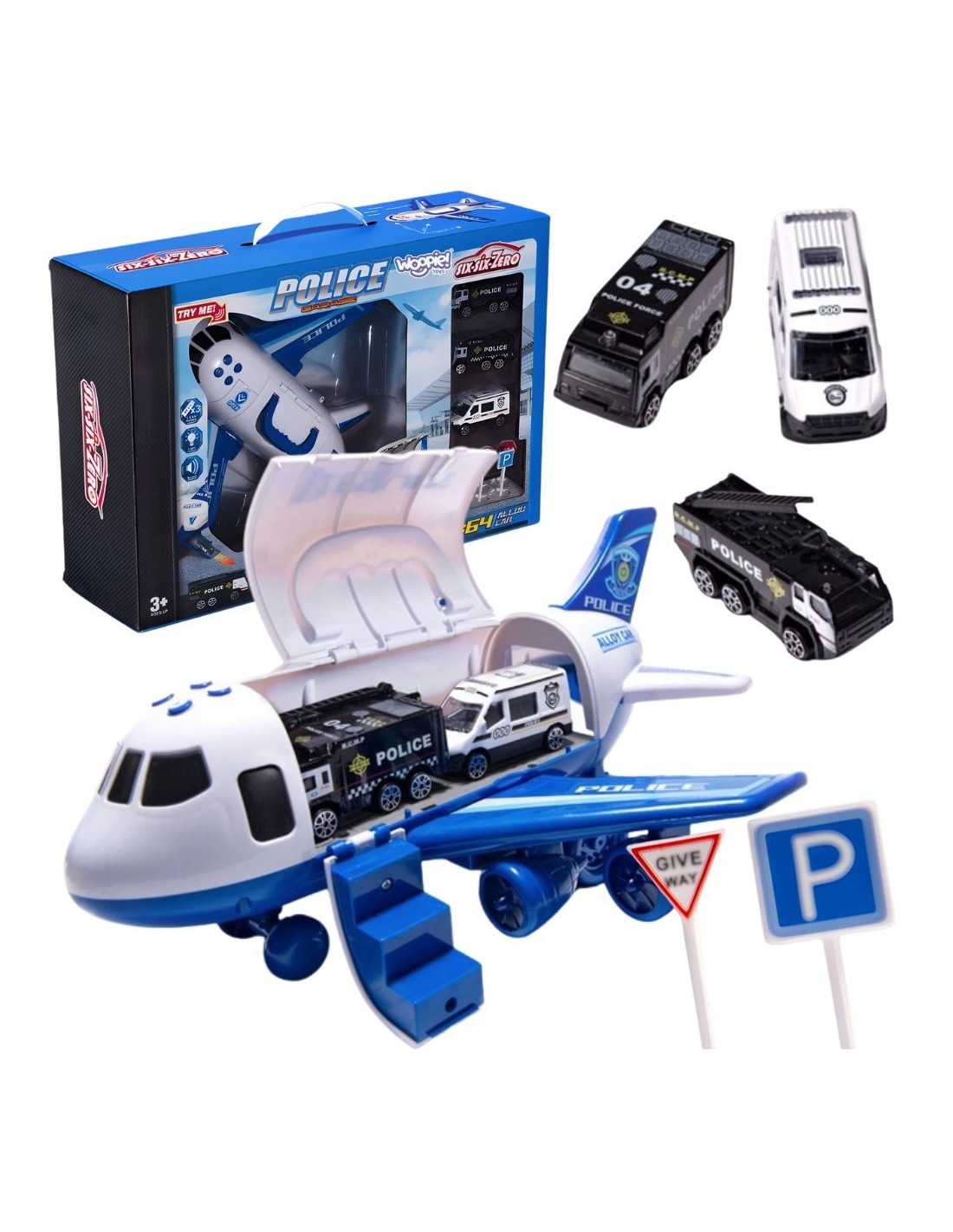 WOOPIE Foldable Police Plane Transporter with 3 Police Cars XL Set Road Signs
