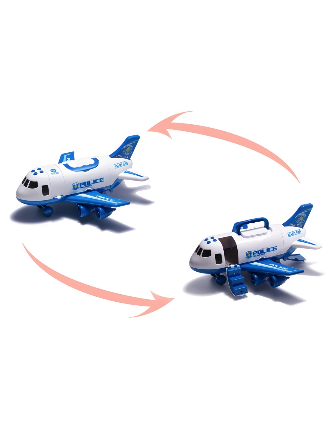 Discover the LARGE, openable police transporter plane from WOOPIE!, which will take your child on an exciting law enforcement mission! The plane's spacious fuselage can accommodate three police cars and a set of road signs, ensuring dynamic play. Four buttons allow for realistic police sirens, and flashing LED lights add dynamic action. The plane's ramp lowers, and the handle makes it easy to carry, making it portable and practical. This is a perfect gift for a little police officer aged 3 and up, encouraging imagination and teamwork.