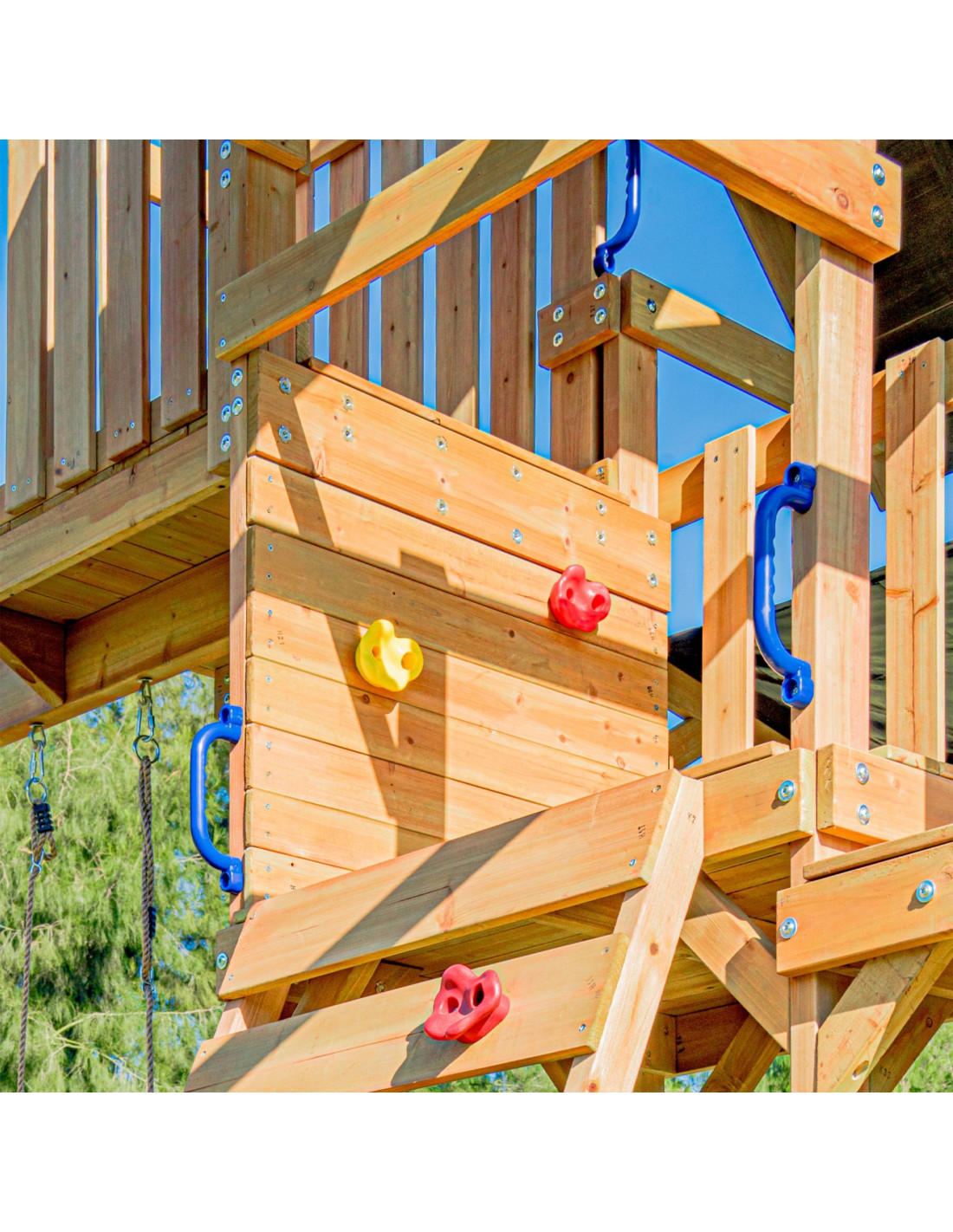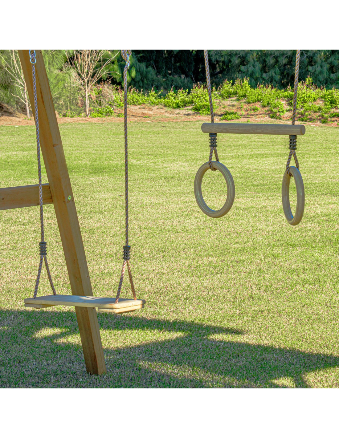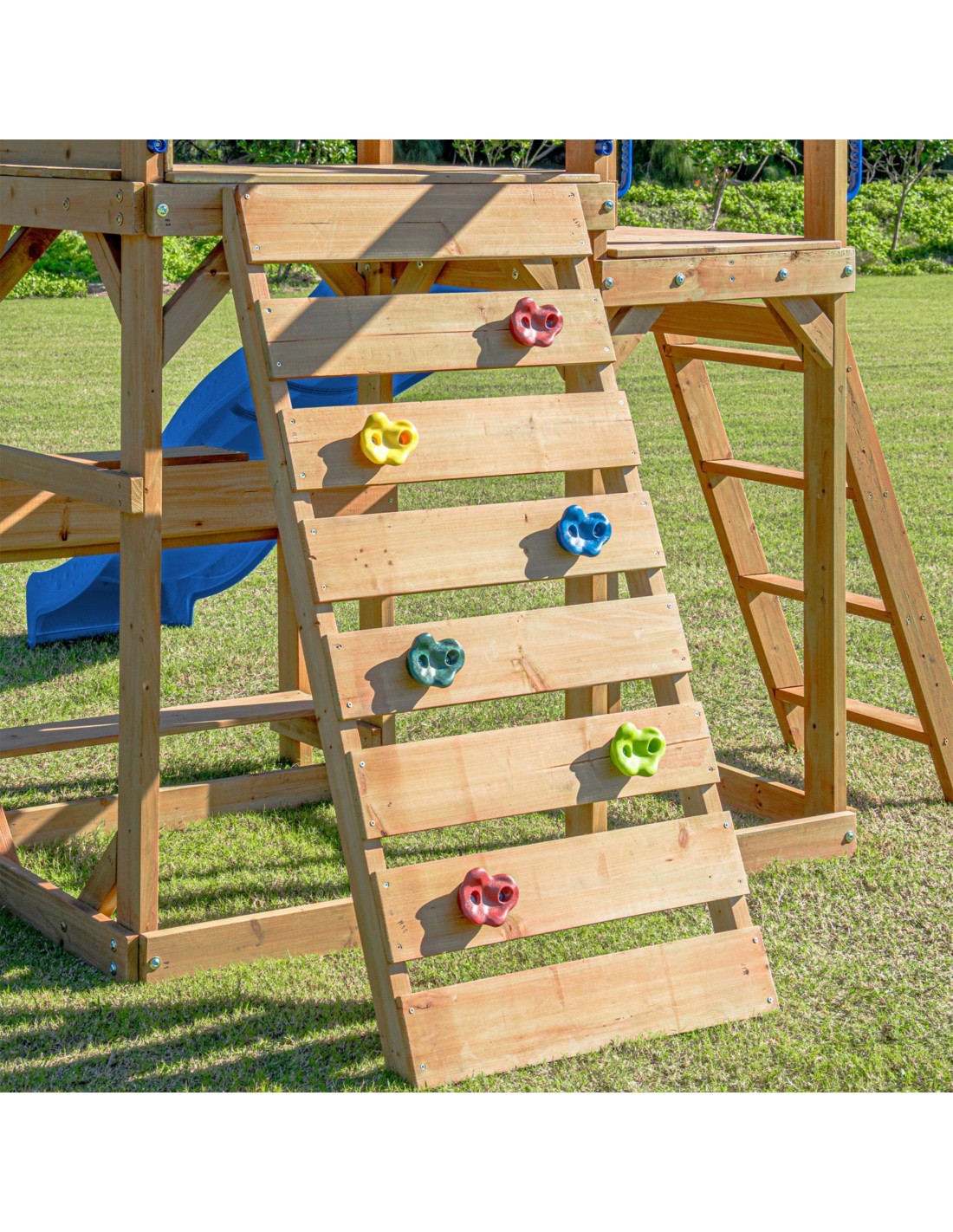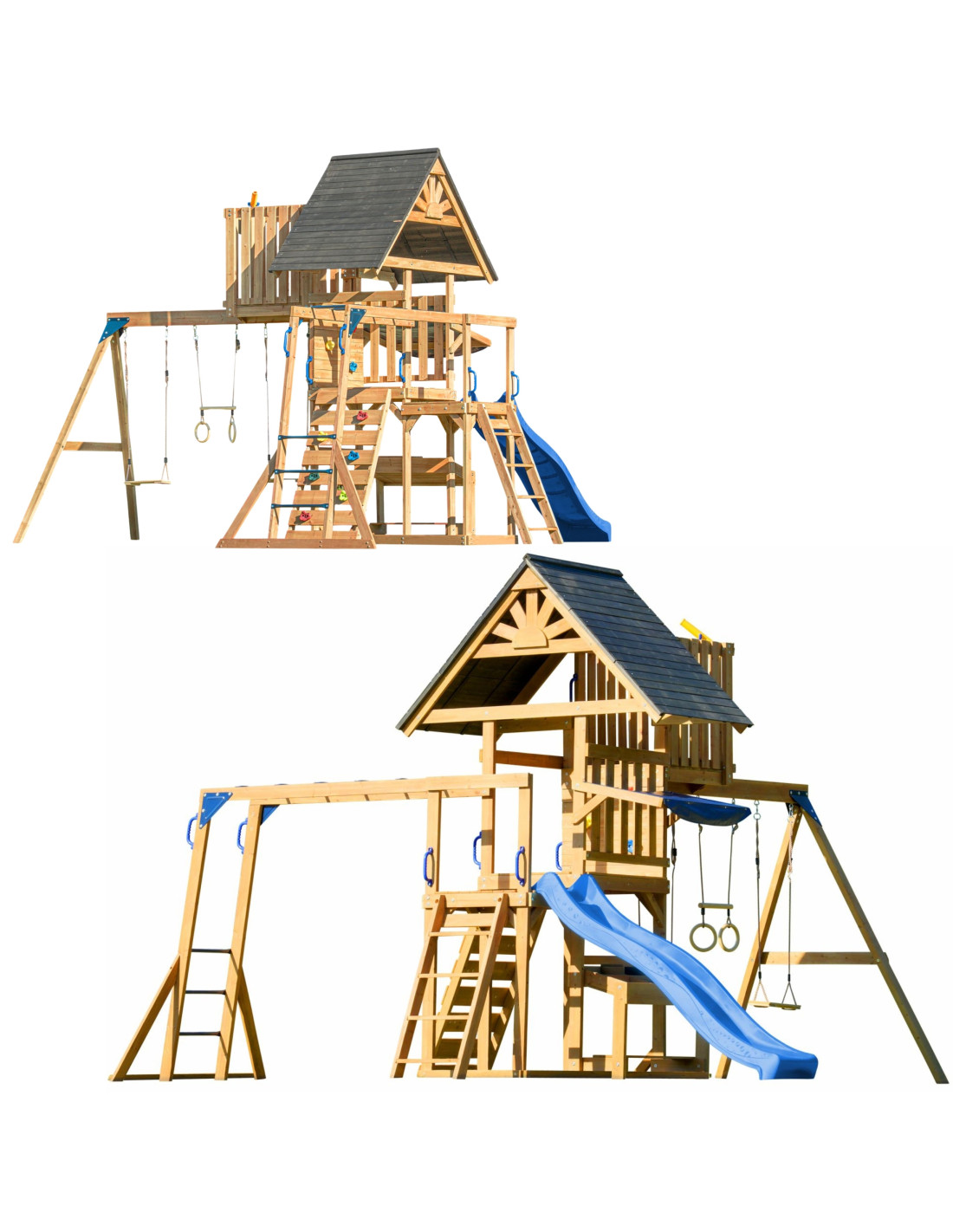 ✔ A multifunctional play set that combines a swing, slide, observation tower, trapeze and sandbox