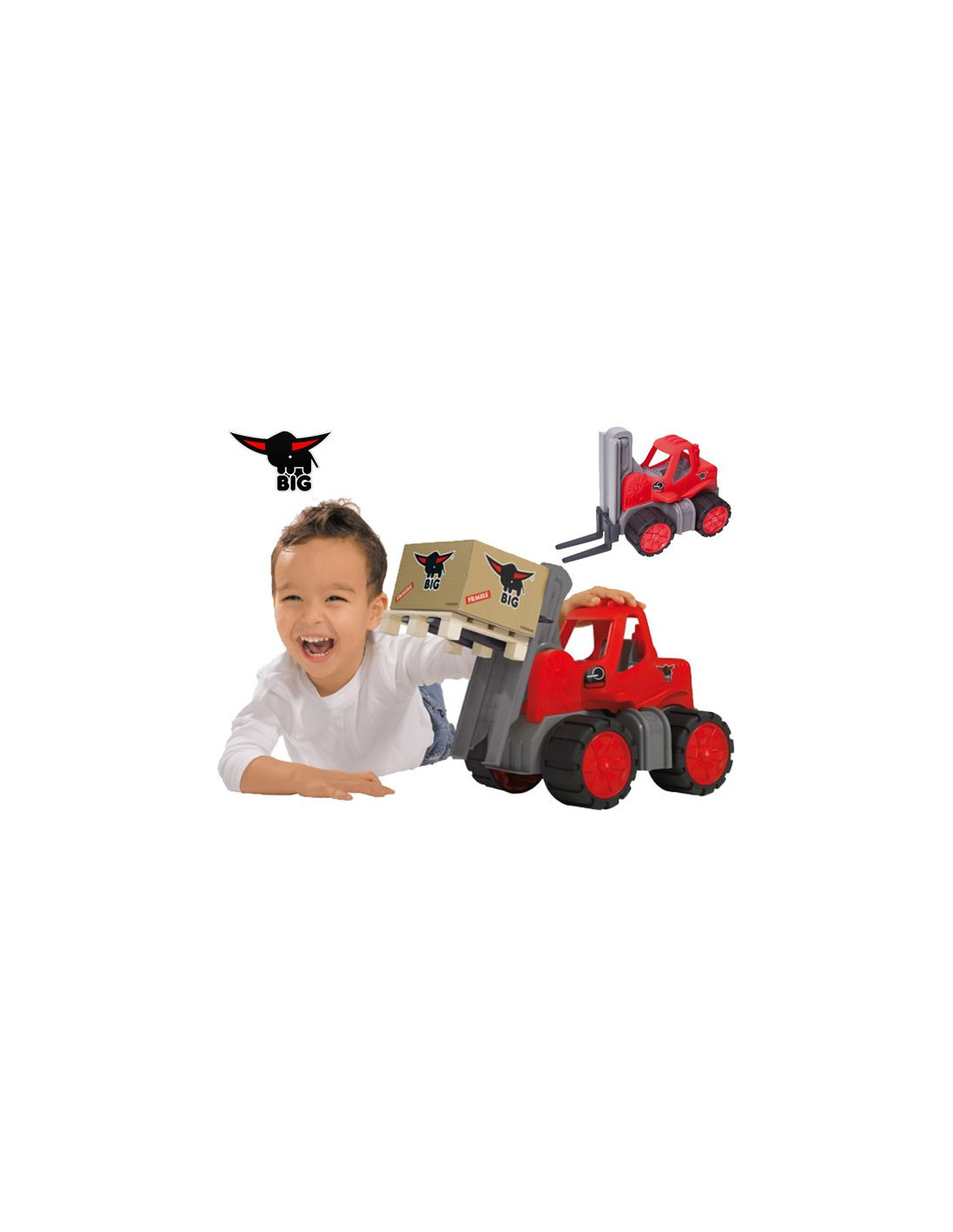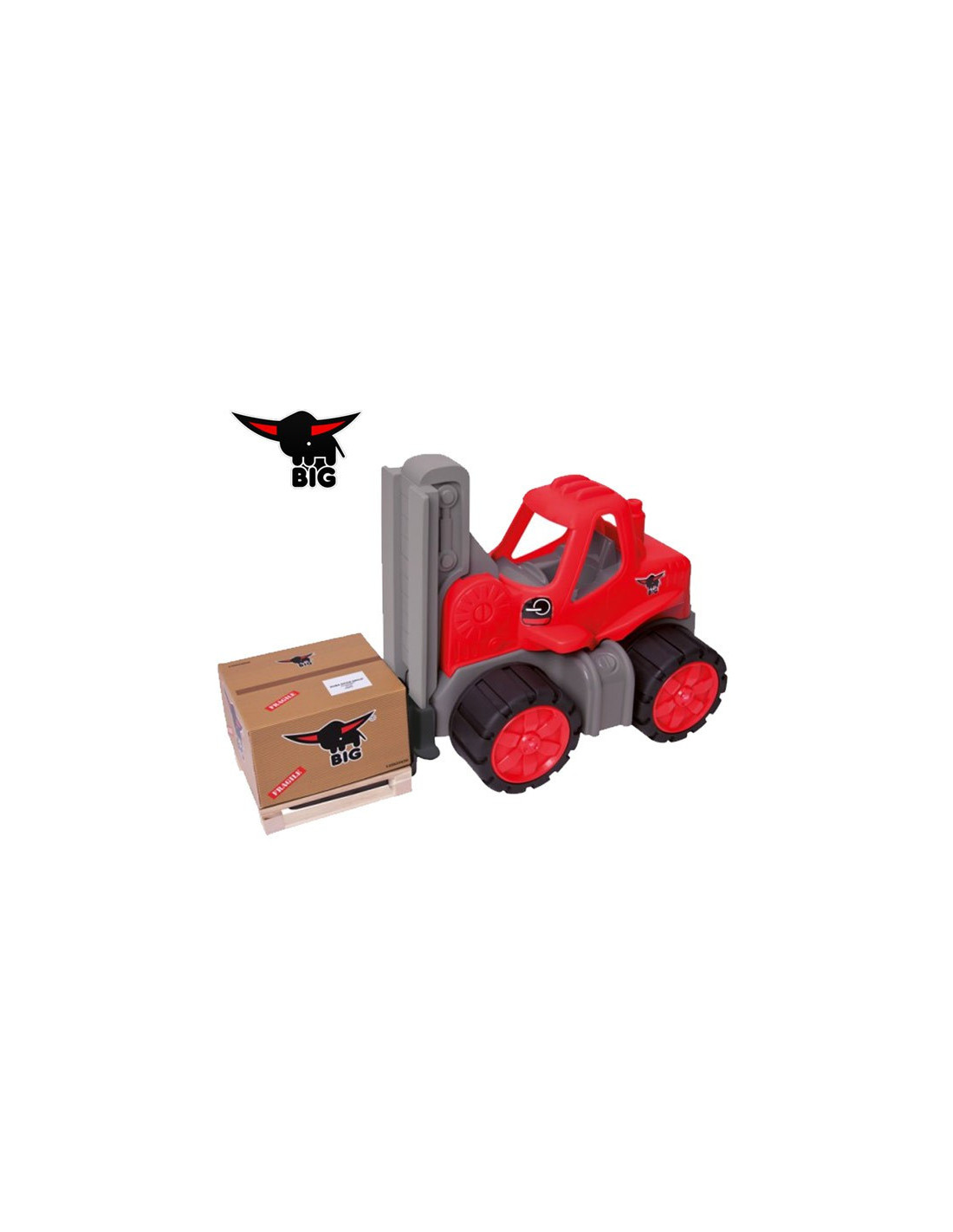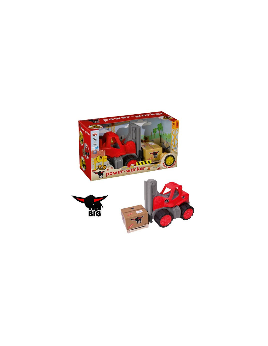 Dzięki opływowym kształtom maluch nie zrobi sobie krzywdy, a umycie pojazdu z piasku i błota potrwa zaledwie kilka sekund. Wózek widłowy Big Power Worker zawiera w zestawie paletę oraz kartonik z logiem producenta Big. Dzięki uchwytom znajdującym się z boku można poruszać widłami w górę i w dół lub rozładować paczkę na jedną ze stron.