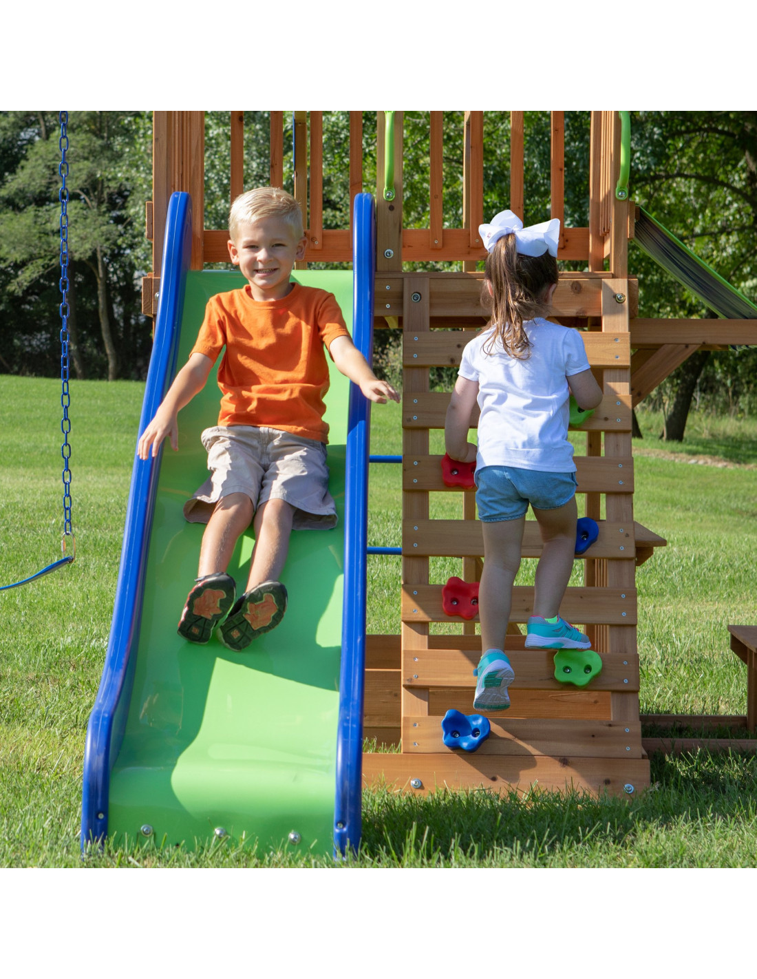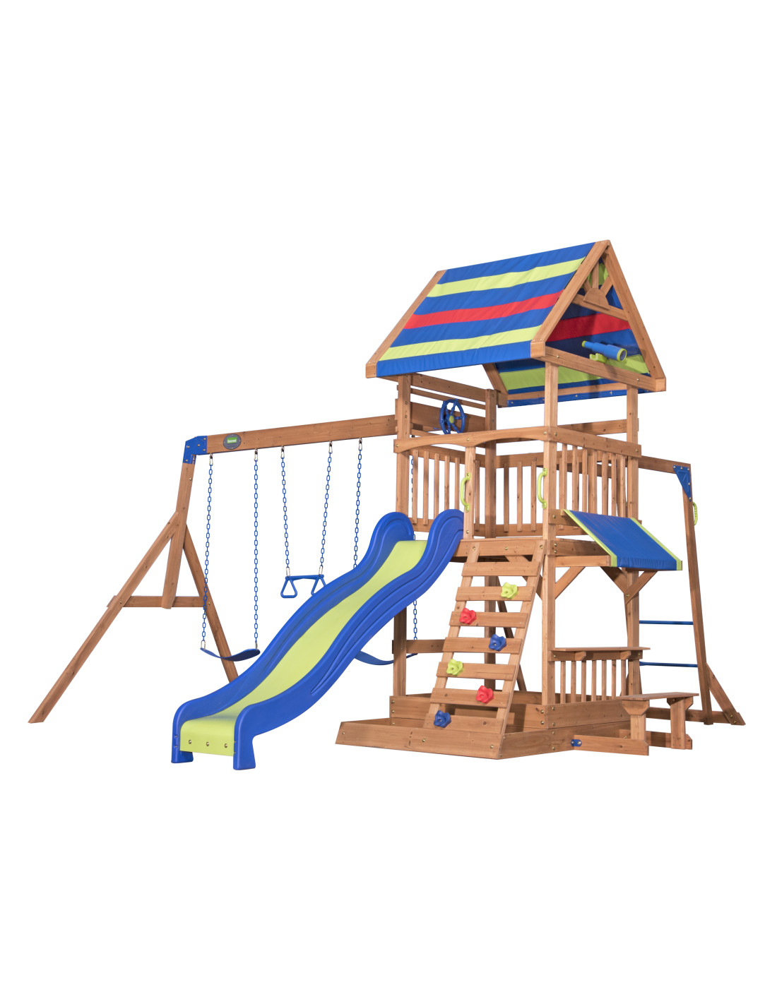 Backyard Discovery has been producing top-quality wooden playgrounds for over 30 years, often equipped with fantastic slides, climbing frames, swings, and sandboxes. We also offer playhouses and recreational products for the garden.