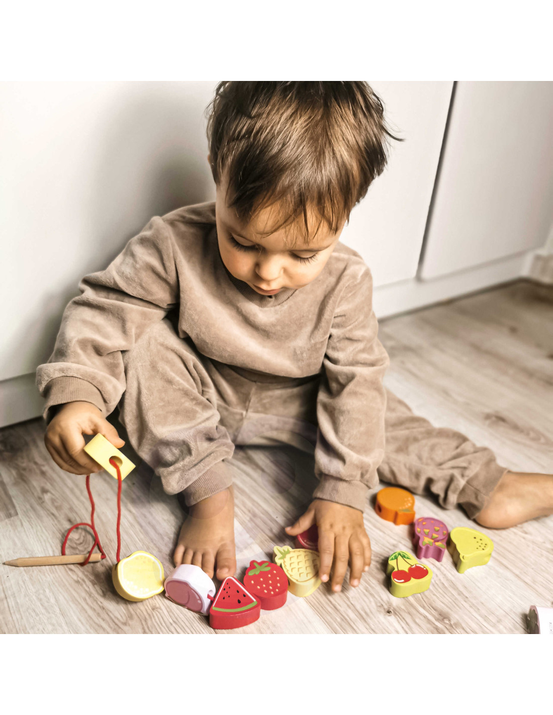 This wooden fruit threader from the renowned brand Classic World is the perfect toy for your youngest explorers. The set consists of 12 wooden fruit-shaped blocks, which are threaded onto a string using a wooden needle. This toy will help your child develop fine motor skills and expand their imagination. It also aims to teach children the names of fruits and their colors. This set will stimulate your little one's curiosity and provide hours of fun – the blocks can be arranged in any way they like.