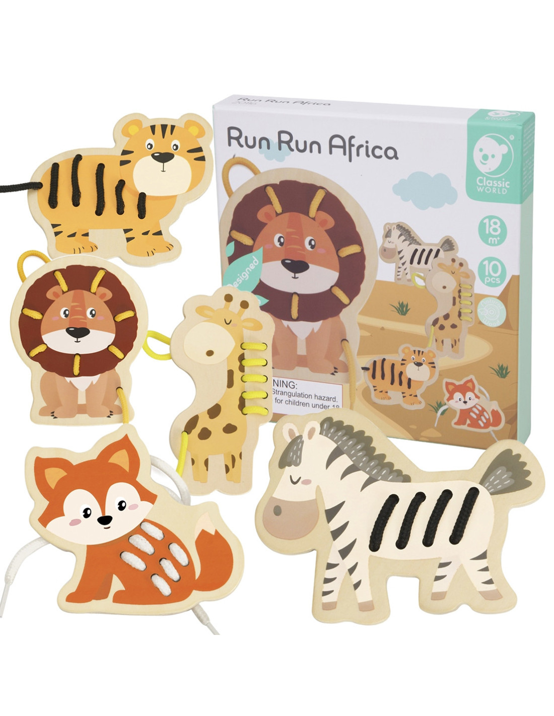 CLASSIC WORLD Wooden Laces Interlacing Threading Machine Animals Africa 10 pcs.