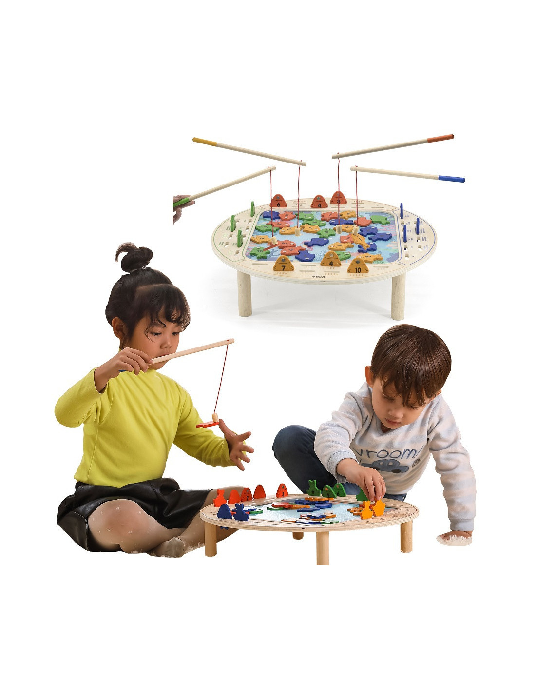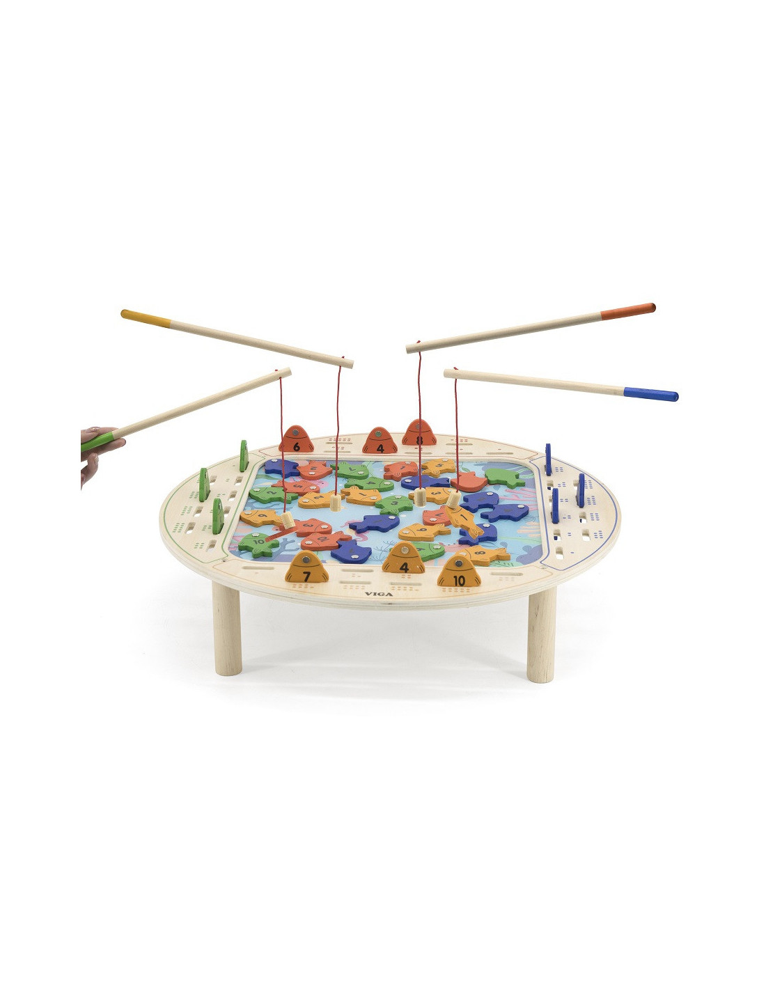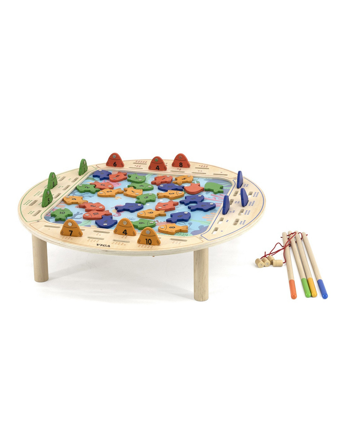- - the toy includes - a wooden game table, 4 fishing rods and 40 fish,