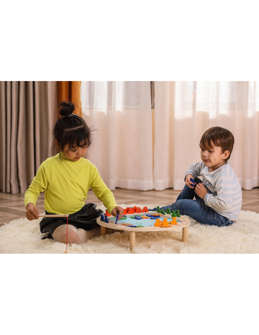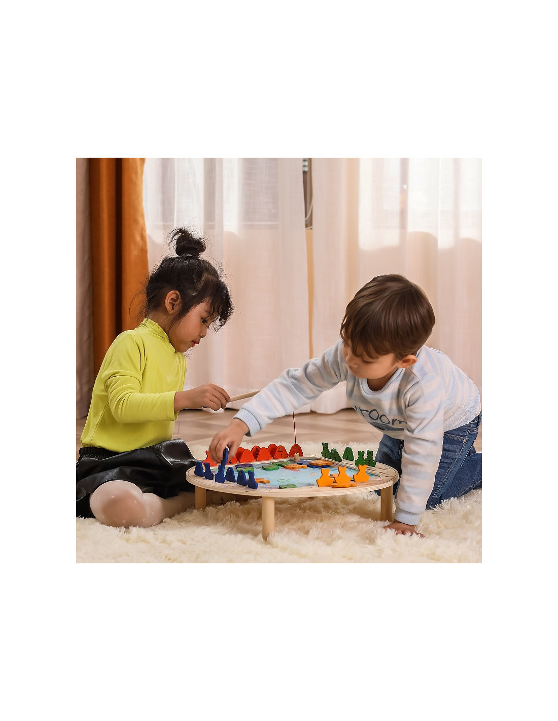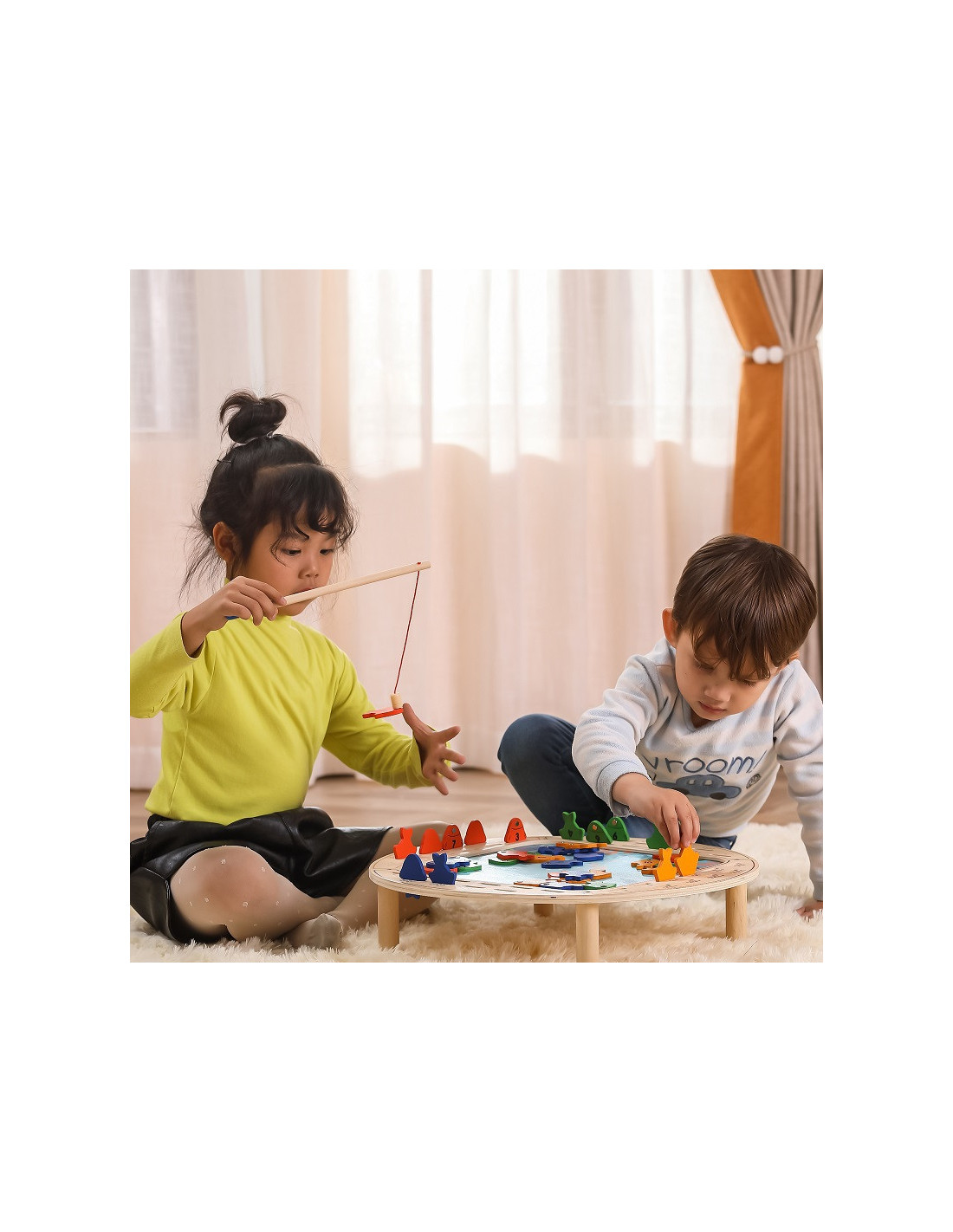 - - the toy includes - a wooden game table, 4 fishing rods and 40 fish,
