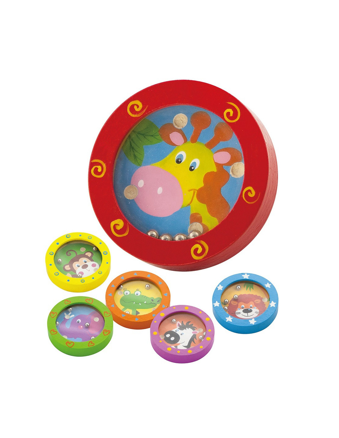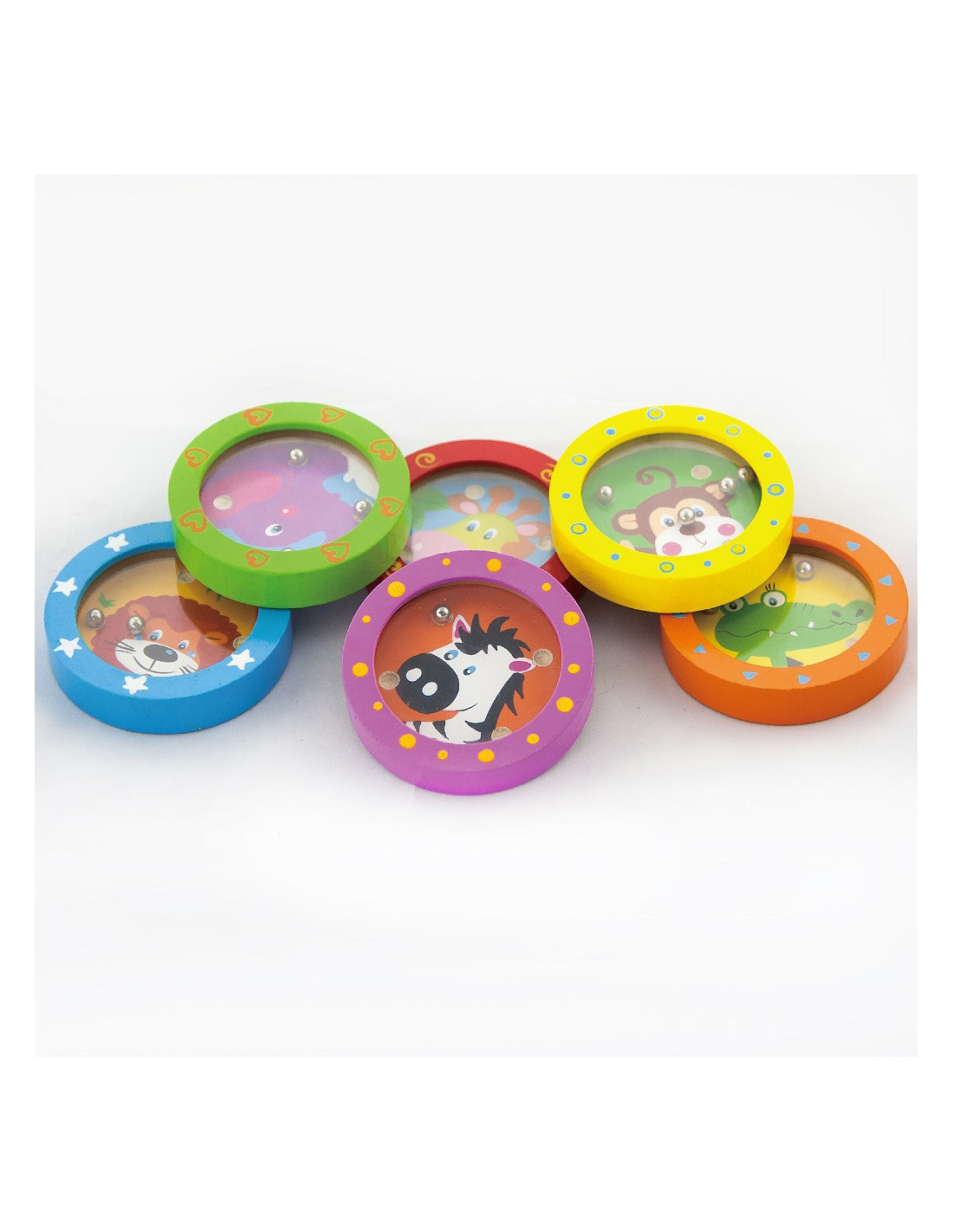 Have fun and learn with our wooden mazes featuring cheerful animals. It's not just a game of skill , but can also serve a therapeutic purpose. Each toy features a different animal friend with their favorite colors and patterns. Children must match small balls to the correct holes, requiring focus and logical thinking. Small and lightweight , the toy is easy to take with you and play anywhere . The toy is made of high-quality wood and coated with non-toxic paints, ensuring safety and durability.