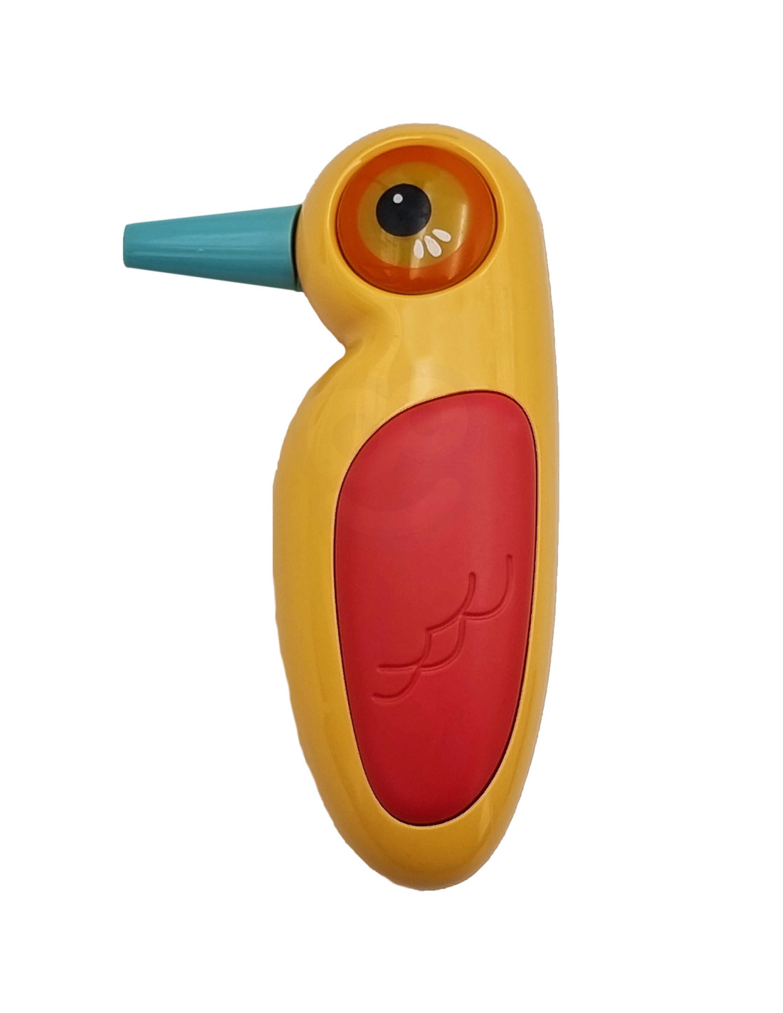 - - the woodpecker lights up , moves its beak and makes sounds and melodies,