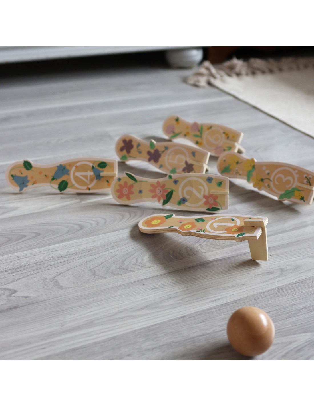 - - kręgle przedstawiają rysunki kwiatków,