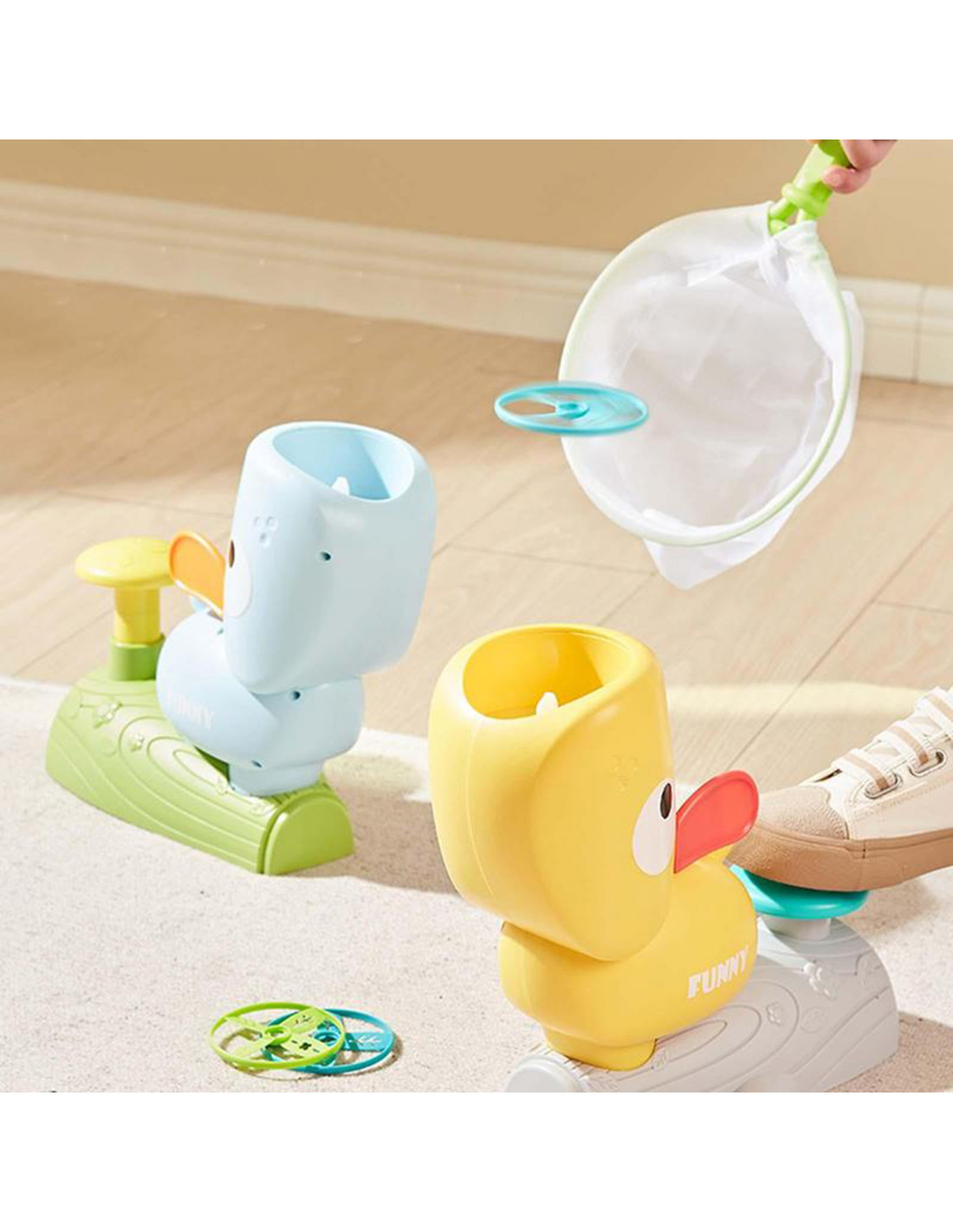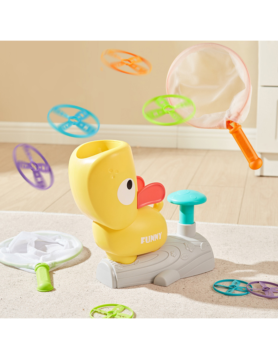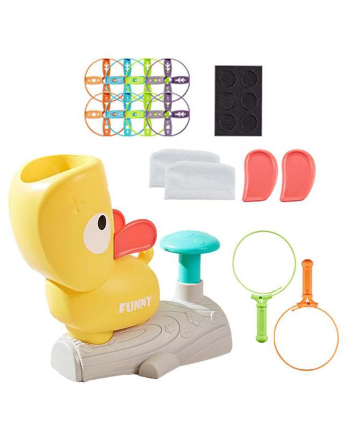Gra Zręcznościowa Złap Frisbee Kaczka Katapulta od marki WOOPIE to idealna propozycja na wspólną zabawę dla całej rodziny! Gra ta opiera się na zręczności, koncentracji i dobrej koordynacji ruchowej. Zadaniem graczy jest złapanie dysku wyrzucanego przez kaczkę. Im silniej naciśniesz przycisk, tym wyżej wyleci dysk. Dzięki temu gra staje się jeszcze bardziej emocjonująca. Produkt jest idealny zarówno dla dzieci jak i dorosłych. Zabawka jest bezpieczna, zawiera okulary z szybką ochronną, które zabezpieczą oczy i twarz w trakcie zabawy.
