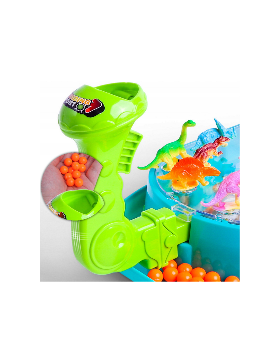- - the set includes a game board, 16 dinosaurs, 24 balls