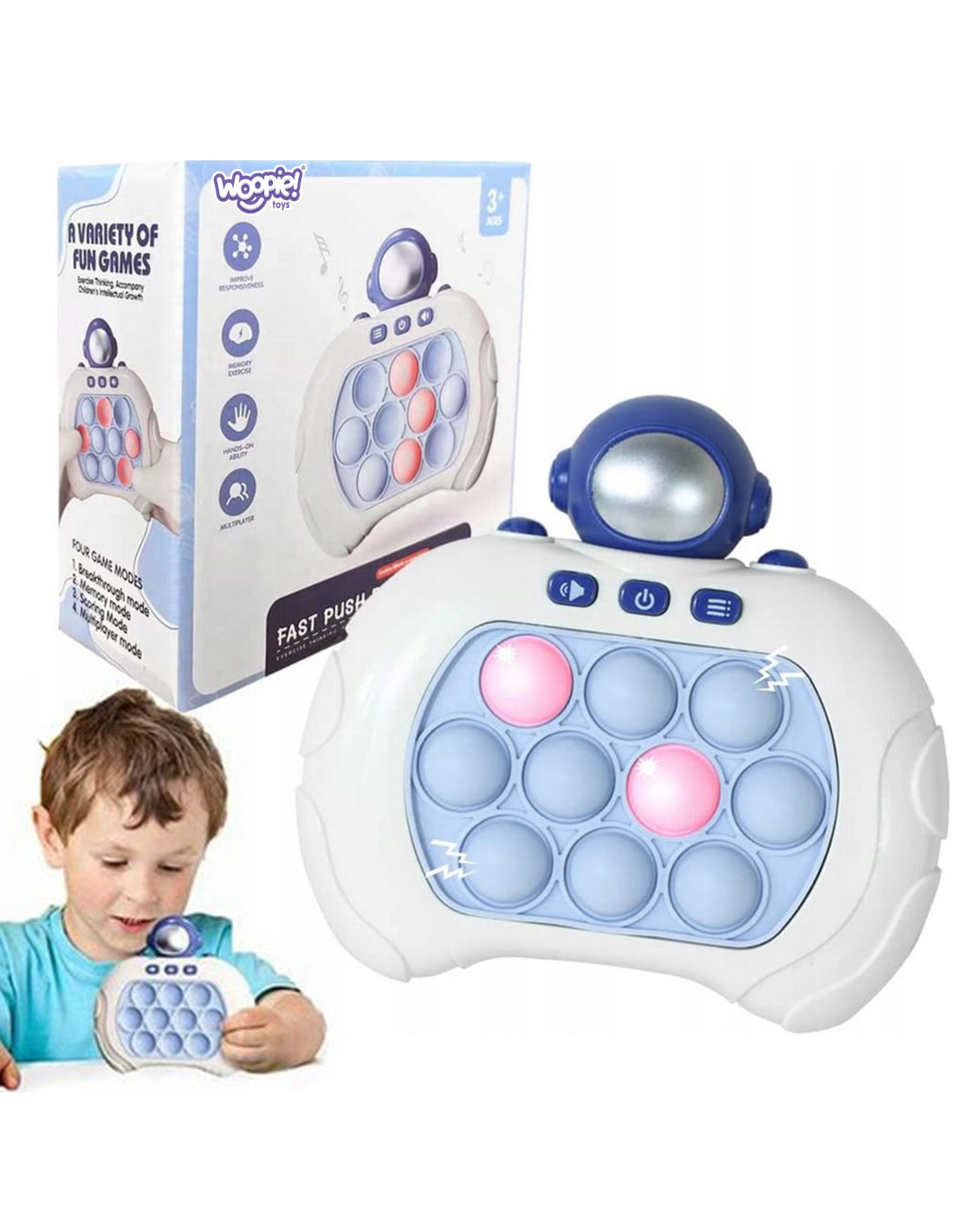 The POP IT Astronaut game is a stress-relief toy perfect for even the youngest children. The game produces cheerful sounds that encourage children to play and add variety to the gameplay. The toy's small size makes it easy to take with you. Pop It is a delight for children and adults alike , who eagerly reach for it. It develops the mind, manual skills, and hand-eye coordination, and trains observation skills, helping to combat stress.