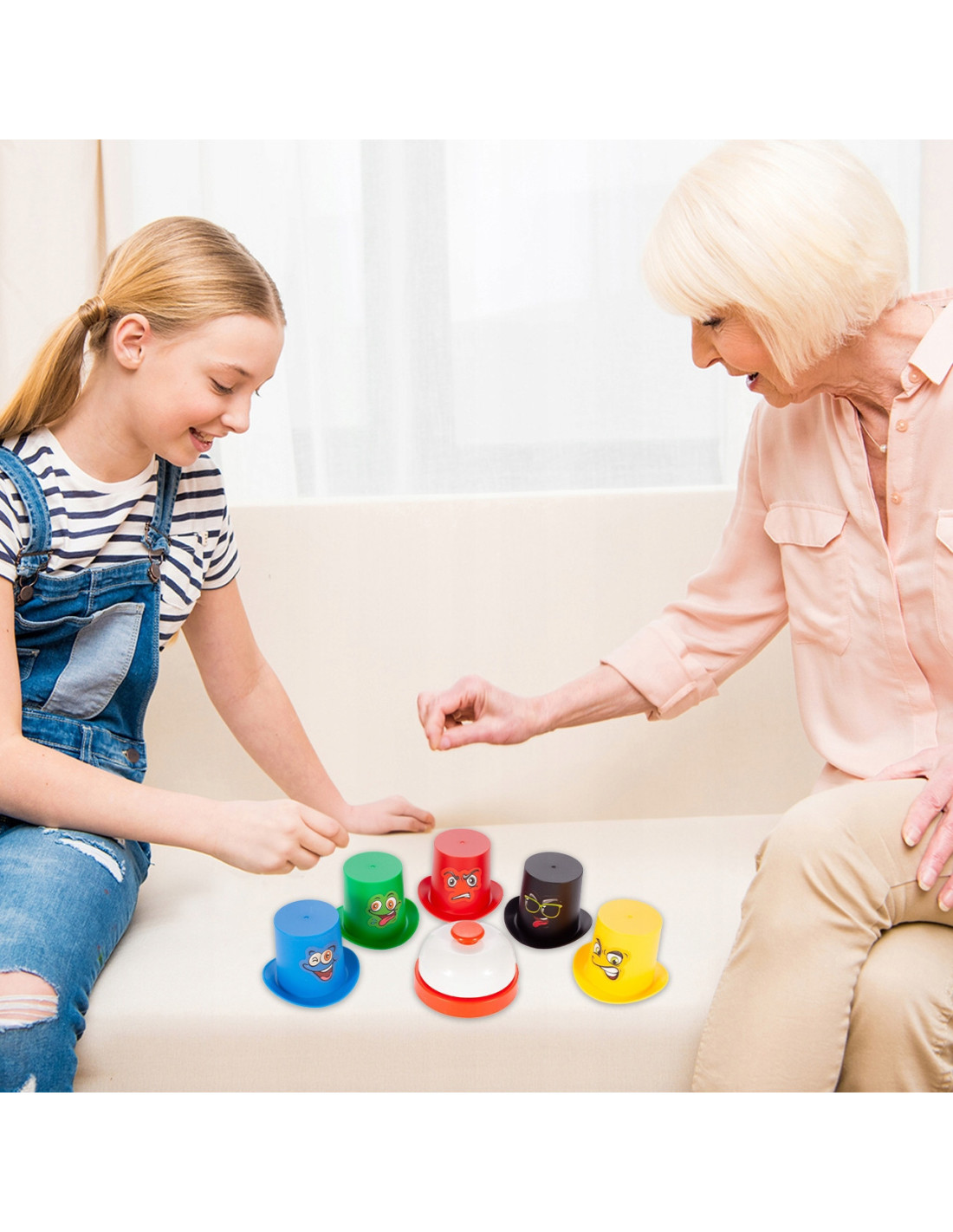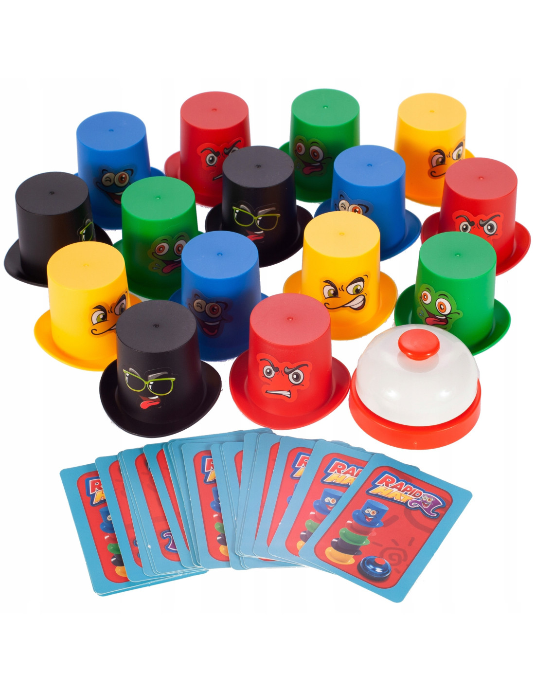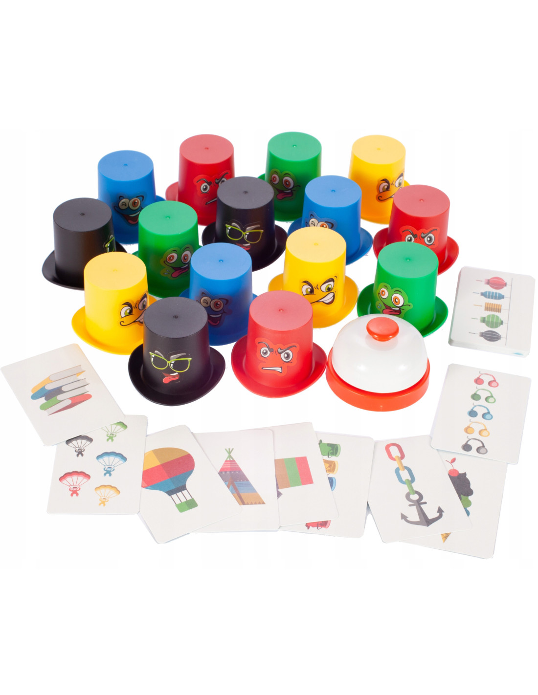 Each player receives five differently colored cups and must quickly arrange them in the order shown on the card. This indicates whether the cups should be placed side by side or stacked. Job done? Time to ring the bell as quickly as possible! The most observant player will be the winner. The game can be played by 2 to 4 players.