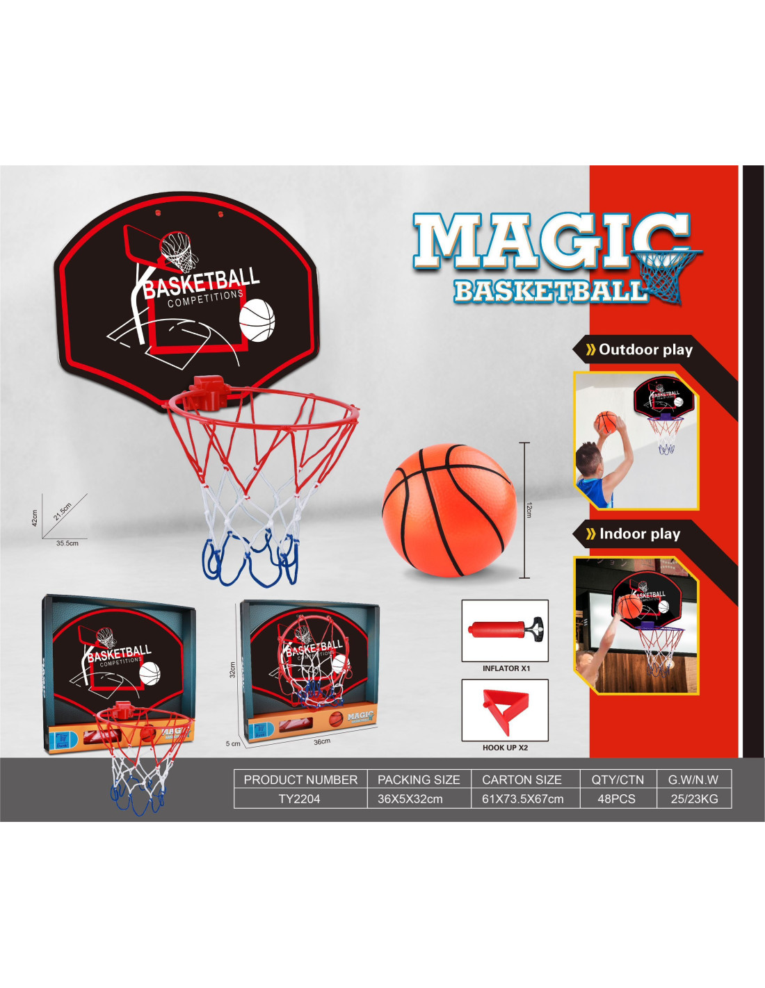 - - The set includes: Basket, inflatable ball, pump, 2 backboard holders