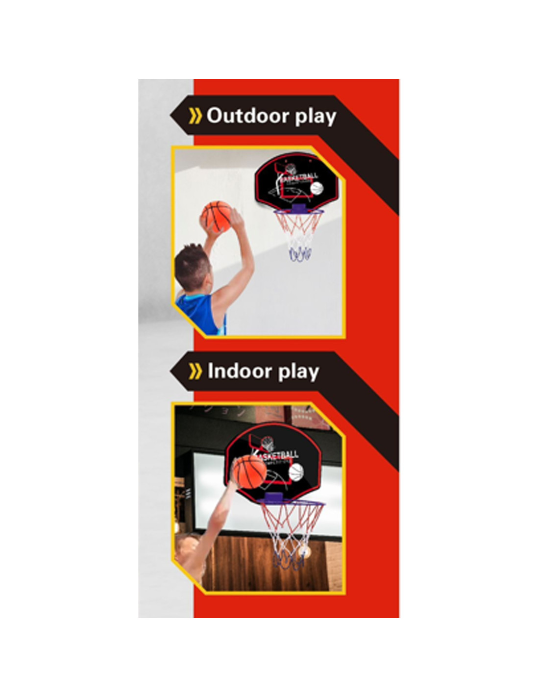 This basketball set from the WOOPIE brand is a great idea if you want to introduce sports to your child while preserving space indoors or outdoors . Easy assembly makes putting the set together a breeze! High-quality materials make it suitable for all weather conditions . This durable backboard will last a long time and provide reliable service both indoors and outdoors. Thanks to its hanging design, it can be placed at any height.