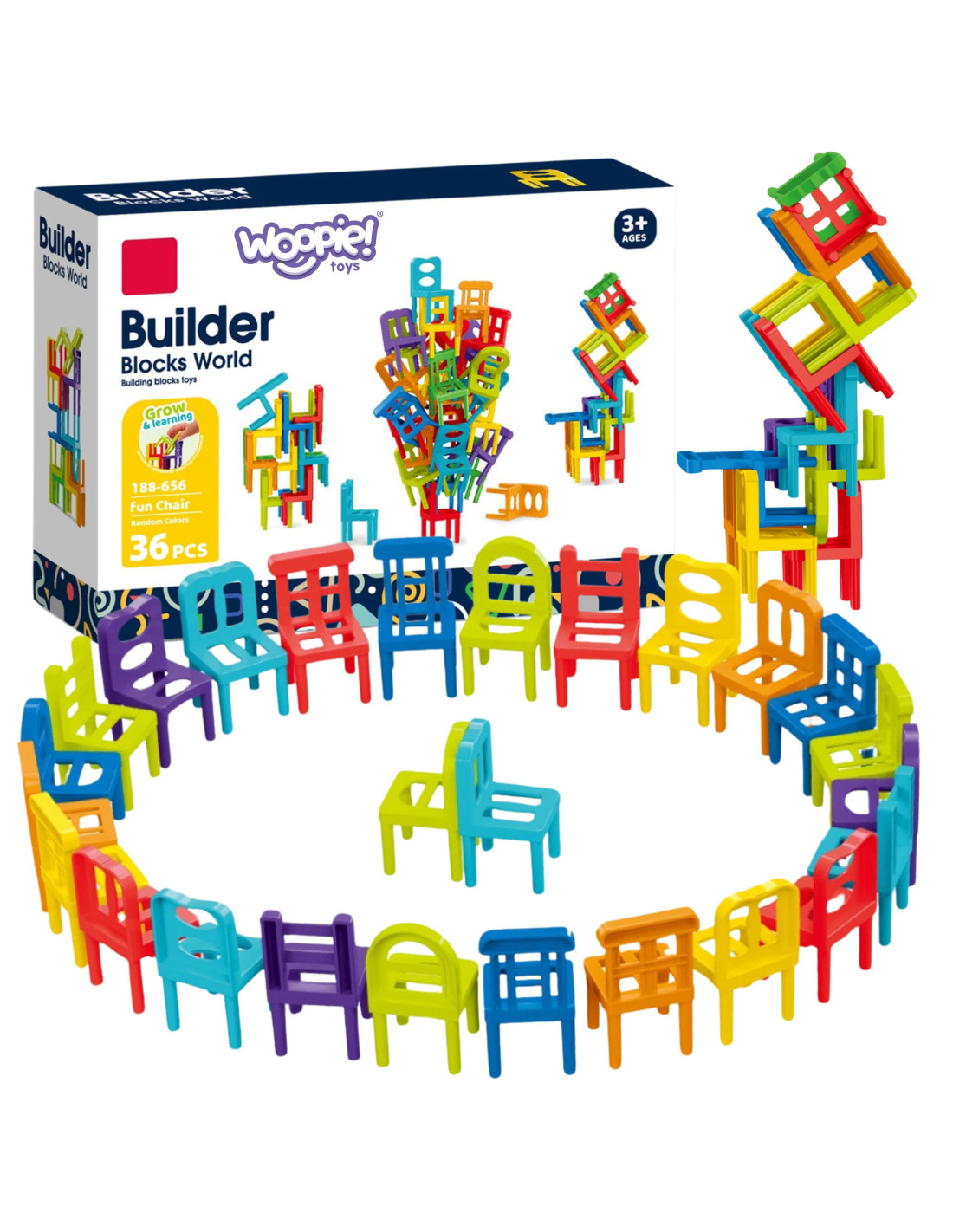 - 36 colorful chairs