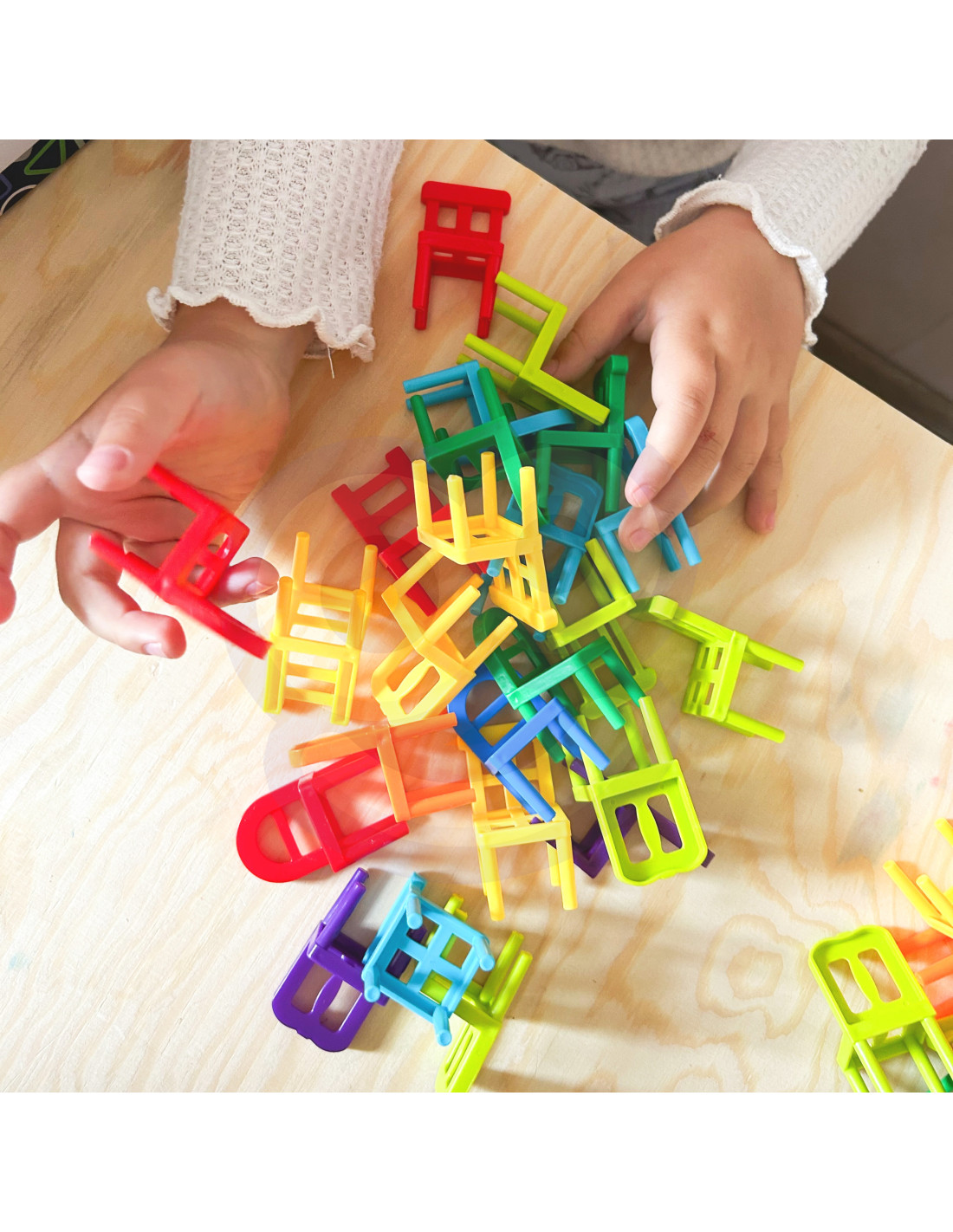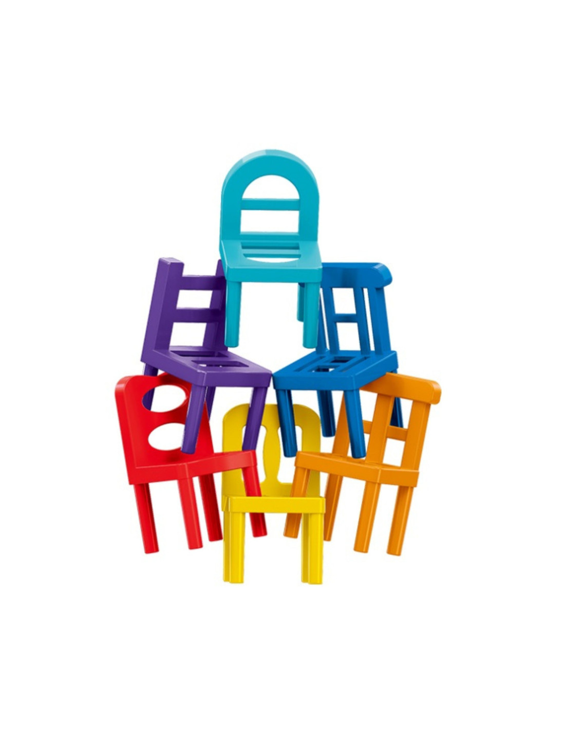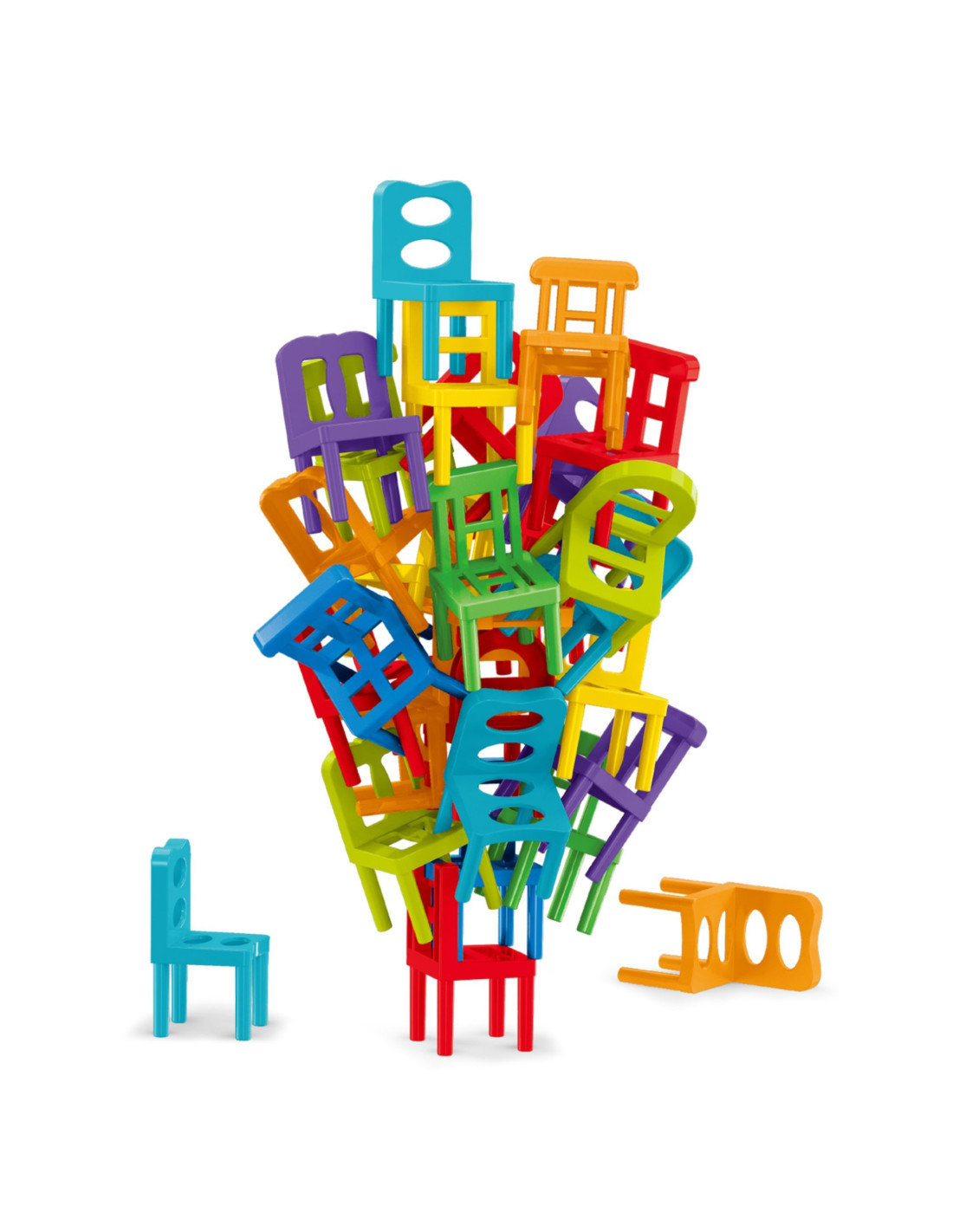 The game involves constructing a tower of chairs. The ultimate goal is to create the highest possible stack of chairs. Players stack chairs one on top of the other, one chair at a time. The player who causes the resulting structure to collapse loses. The game is not at all simple, as the shapes of the chairs don't allow for the construction of the classic, well-known pyramid.