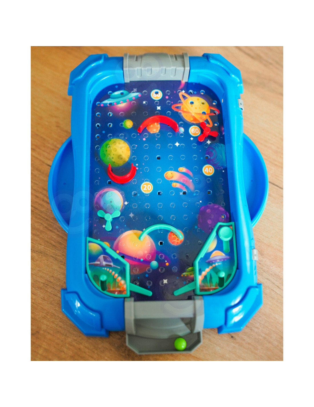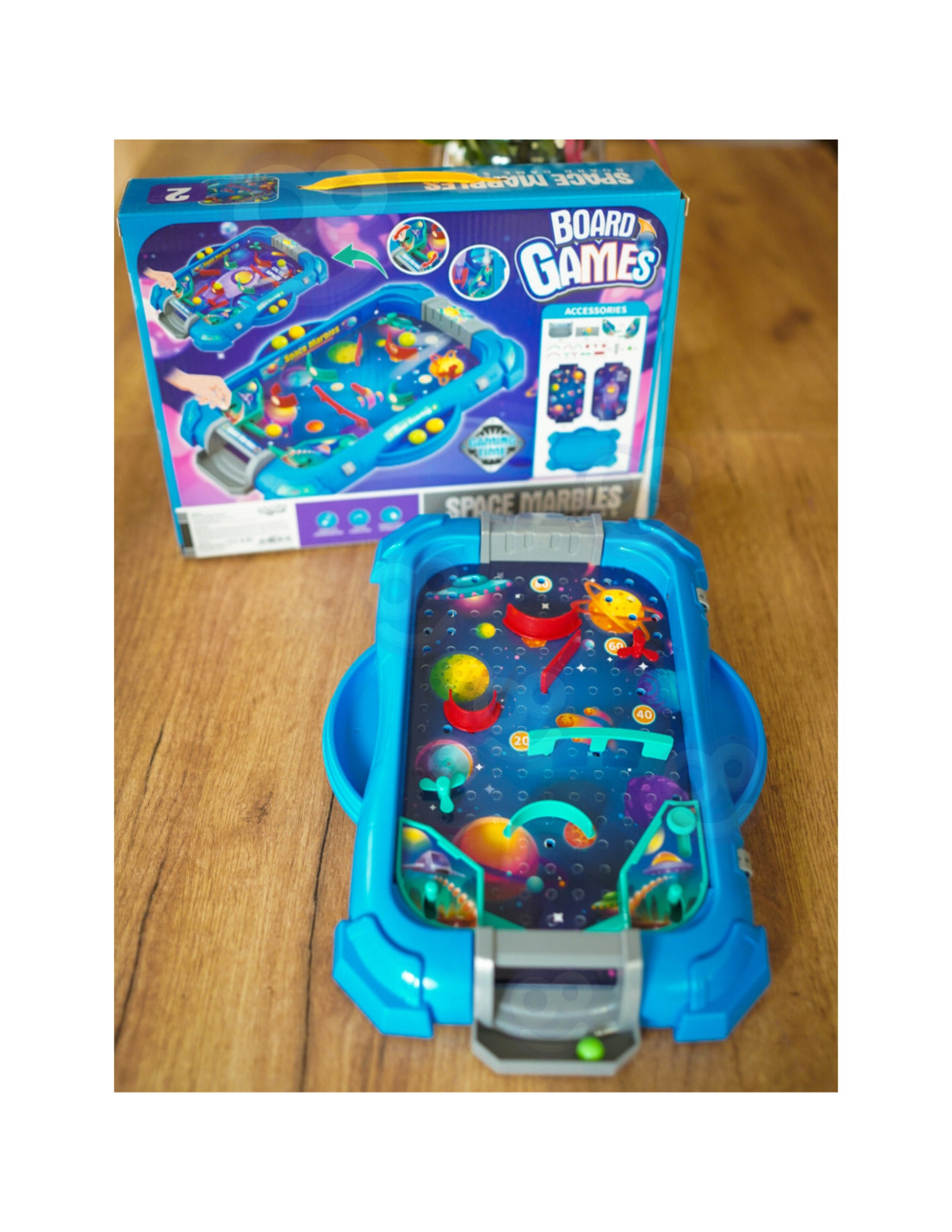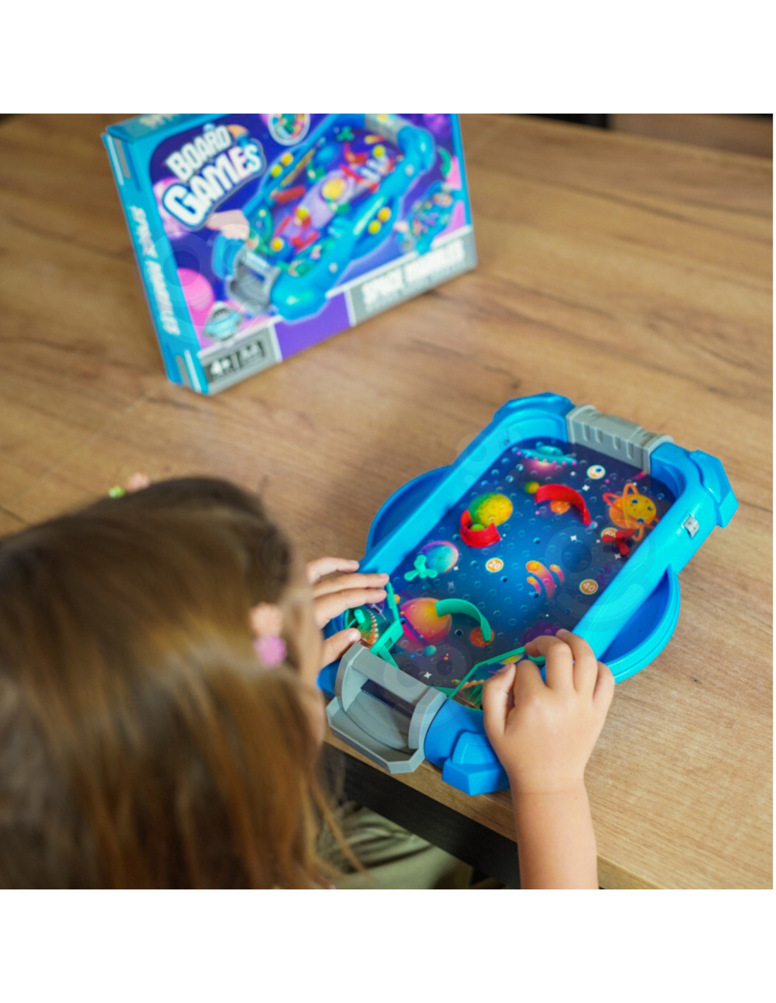 The " Space Game " Pinball Arcade Game from WOOPIE is a great way to keep your child entertained. This popular arcade game is designed for both solo and group play. It resembles a real pinball machine, which adds to its appeal ! The goal is to score as many points as possible by using various moves and strategies. Simple rules and colorful elements capture the attention of youngsters and make the game a joy . The toy is meticulously crafted, and the overall design is fantastic – it's sure to delight every little fan of this game. The rules are simple! All you need to do is assemble the board yourself – it's easy. Simply press the game pieces into the appropriate holes on the board and start bouncing the ball!