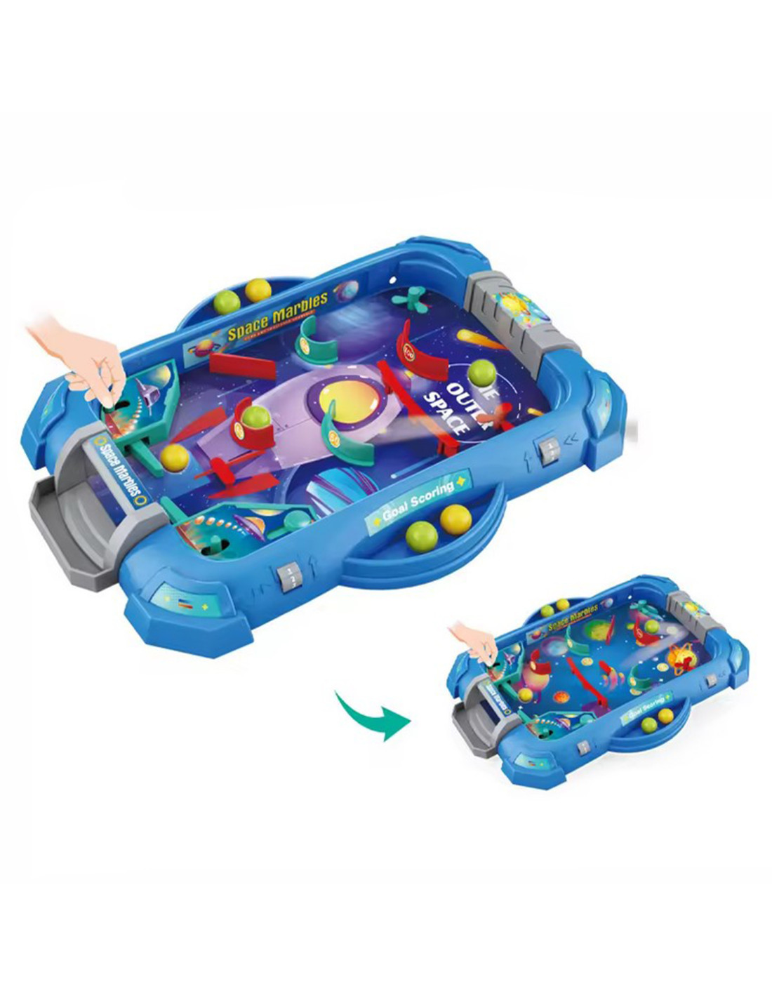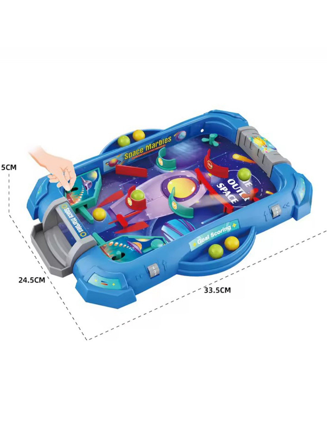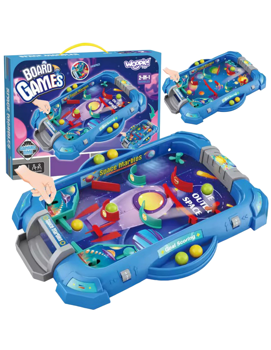 The " Space Game " Pinball Arcade Game from WOOPIE is a great way to keep your child entertained. This popular arcade game is designed for both solo and group play. It resembles a real pinball machine, which adds to its appeal ! The goal is to score as many points as possible by using various moves and strategies. Simple rules and colorful elements capture the attention of youngsters and make the game a joy . The toy is meticulously crafted, and the overall design is fantastic – it's sure to delight every little fan of this game. The rules are simple! All you need to do is assemble the board yourself – it's easy. Simply press the game pieces into the appropriate holes on the board and start bouncing the ball!