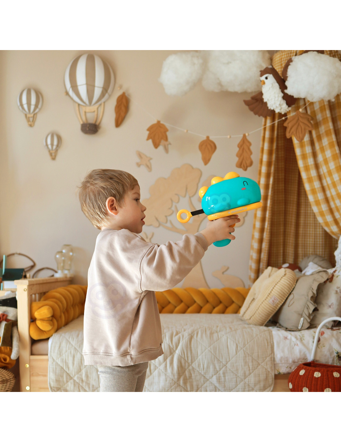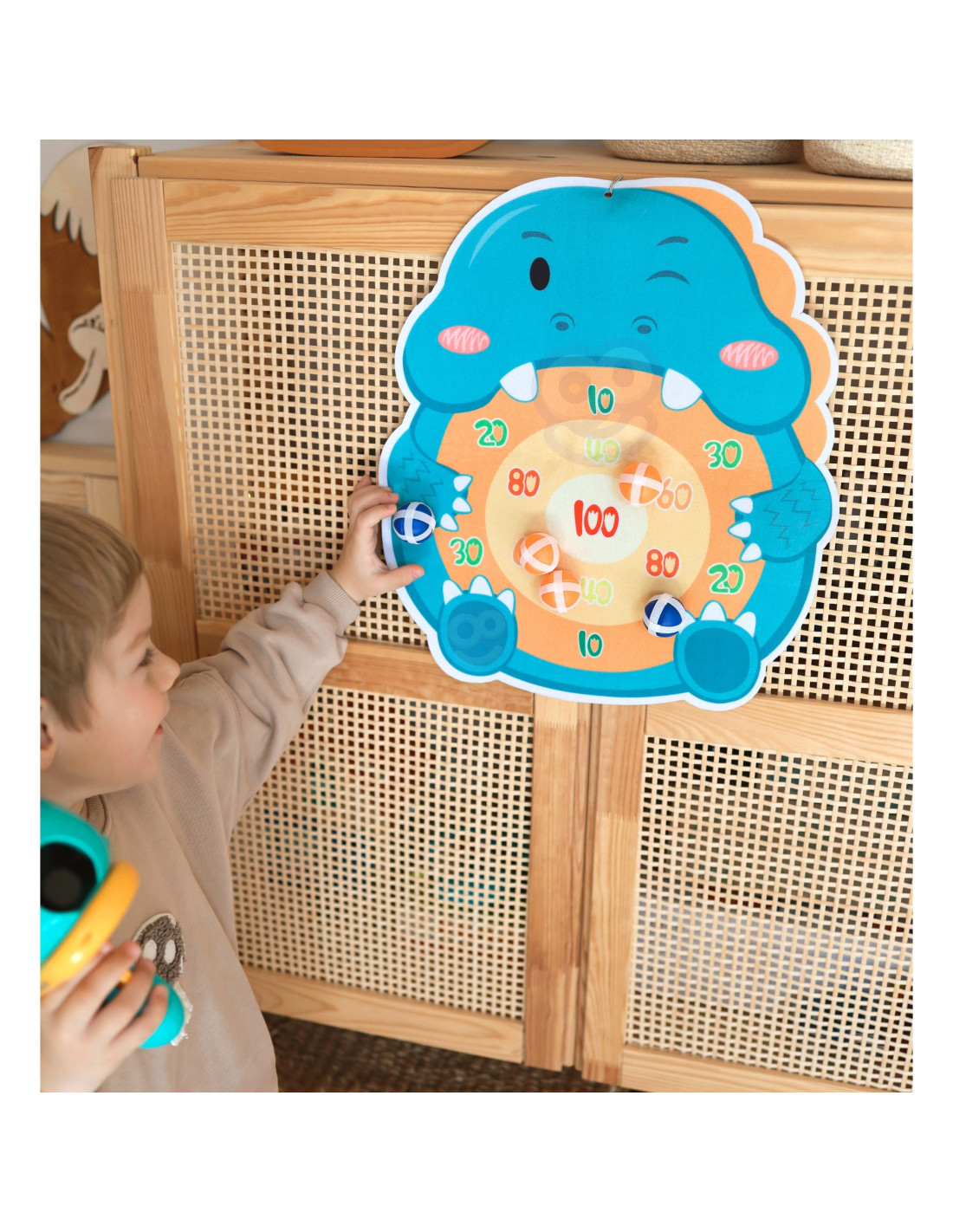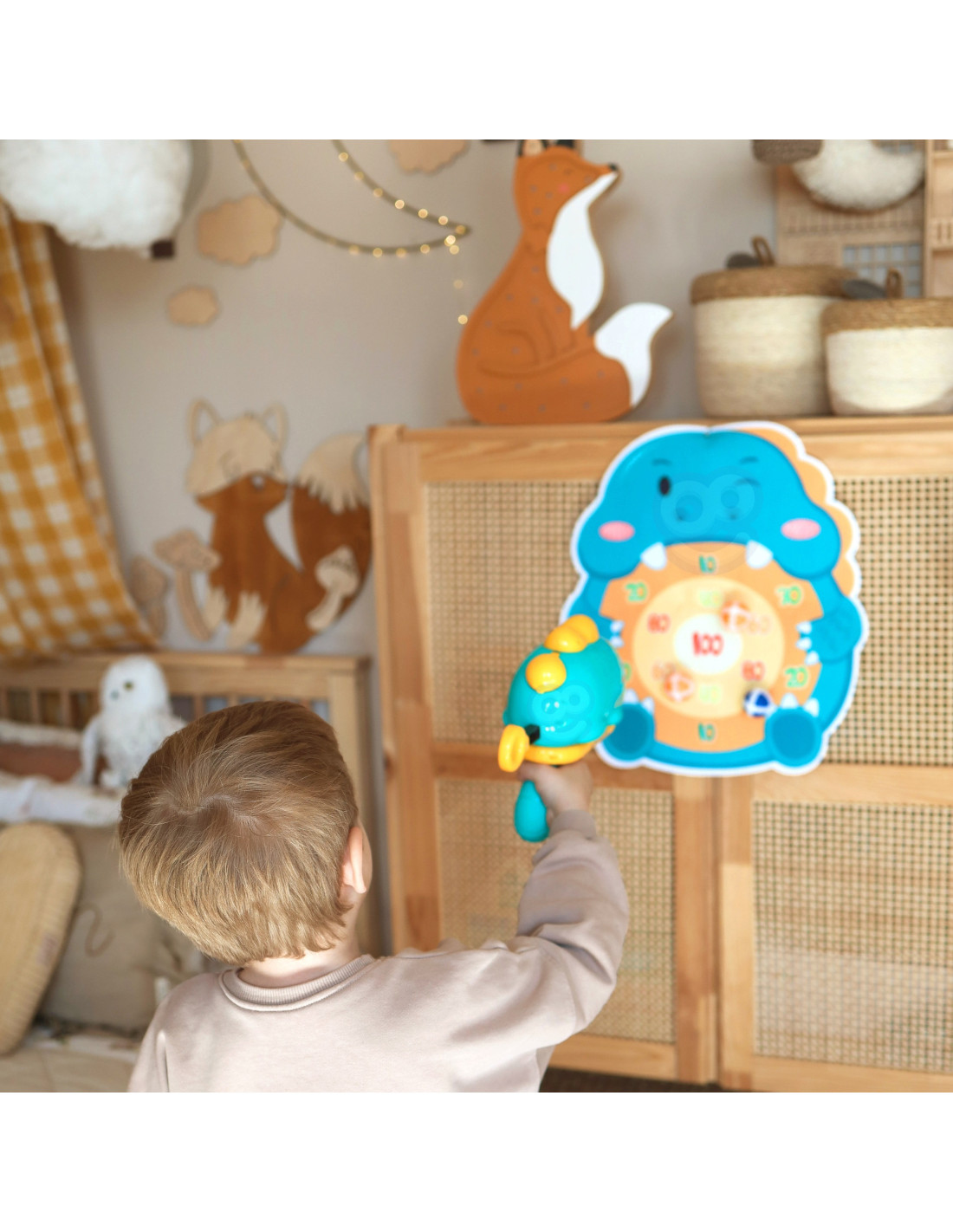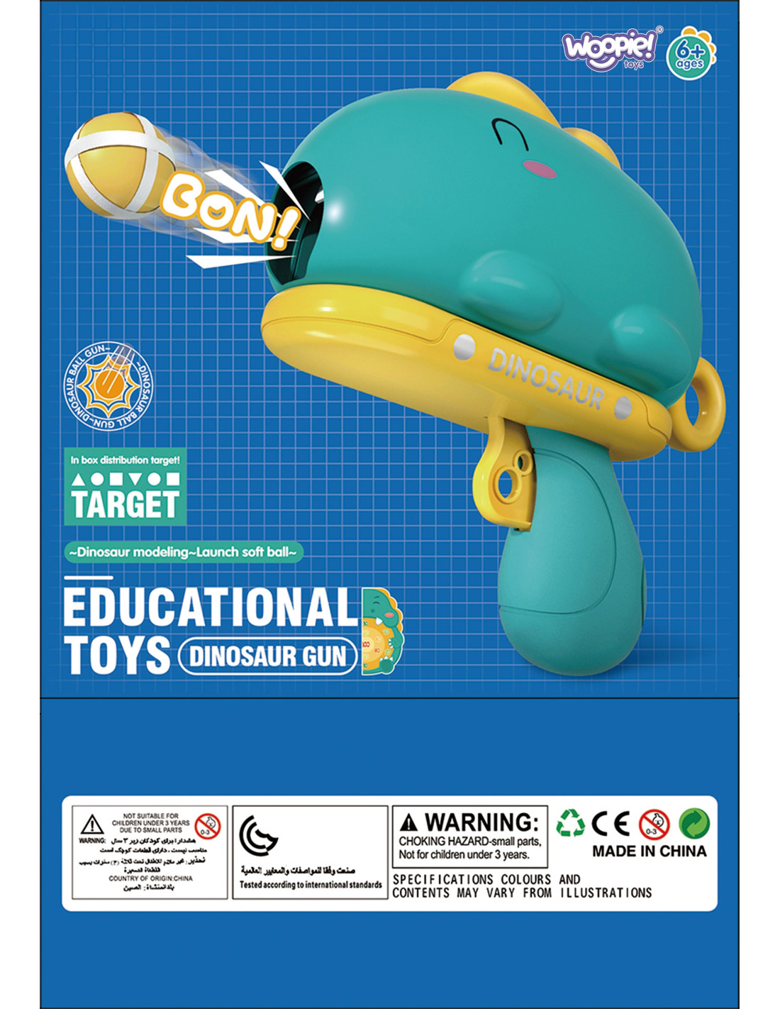 The WOOPIE dart gun features a prehistoric reptile design, making it perfect for all fans of this genre. Simply load the dinosaur-shaped gun with balls, pull the lever, and then aim at the target on the dartboard. The dartboard is lightweight and portable , allowing you to play anywhere – both indoors and outdoors. Equipped with a mounting hook , the dartboard easily attaches to various surfaces, and after play, you can quickly fold it up and store it neatly. The set includes six colorful darts. This game is perfect for developing fine motor skills and coordination in youngsters, and for fostering competitive spirit in older ones. The dartboard, divided into scoring zones, adds a competitive element – see who in your family or group of friends will become the marksmanship champion.