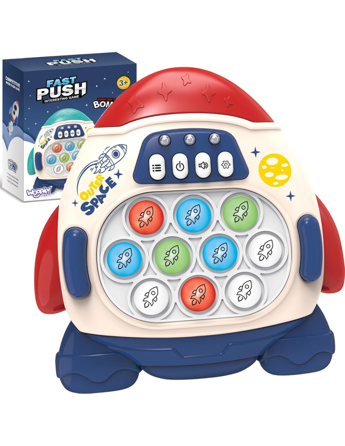 The POP IT Rocket game is a stress-relief toy perfect for even the youngest children. The game produces cheerful sounds that encourage children to play and add variety to the gameplay. The toy's small size makes it easy to take with you. Pop It is a delight for children and adults alike , who eagerly reach for it. It develops the mind, manual skills, and hand-eye coordination, and trains observation skills, helping to combat stress.