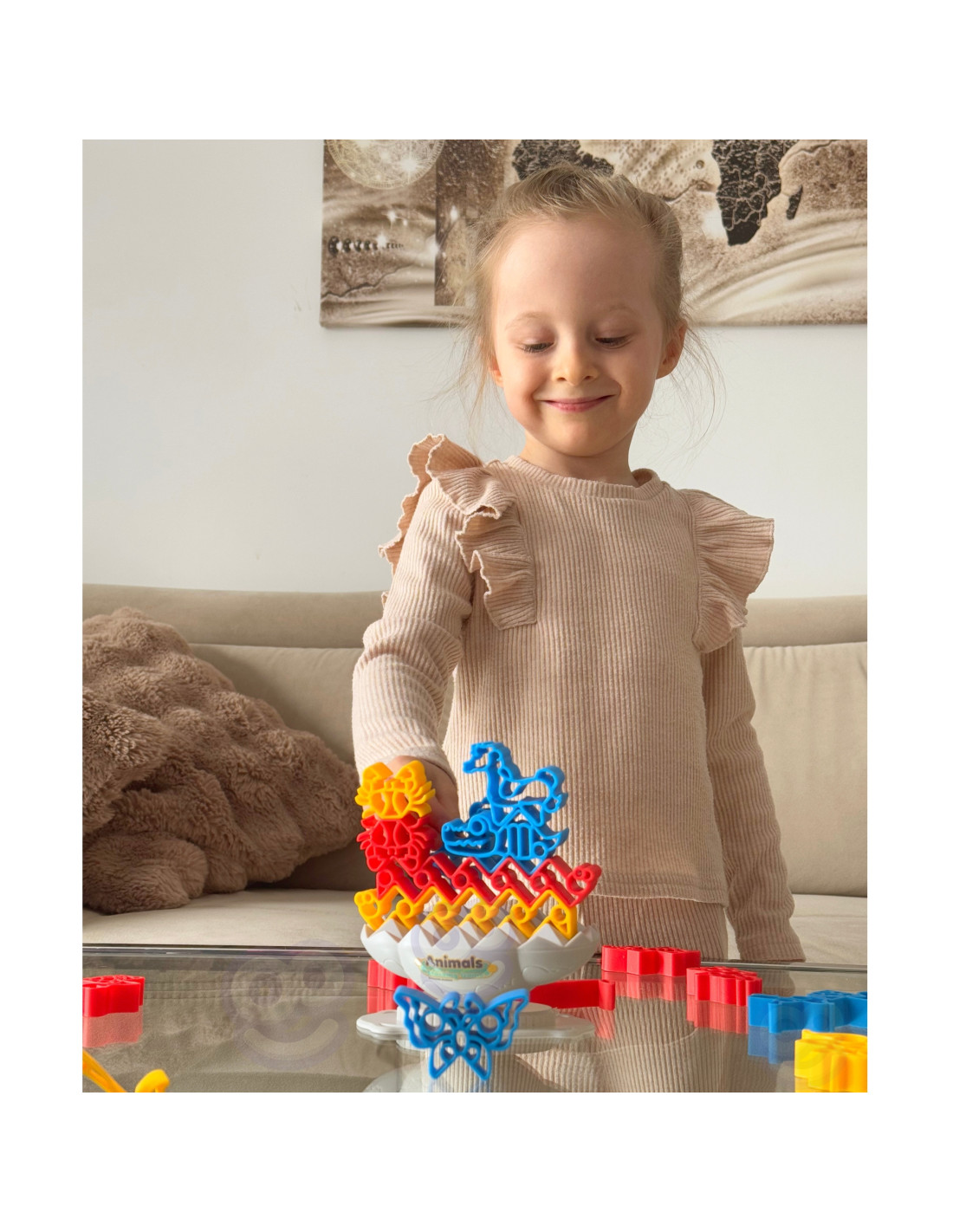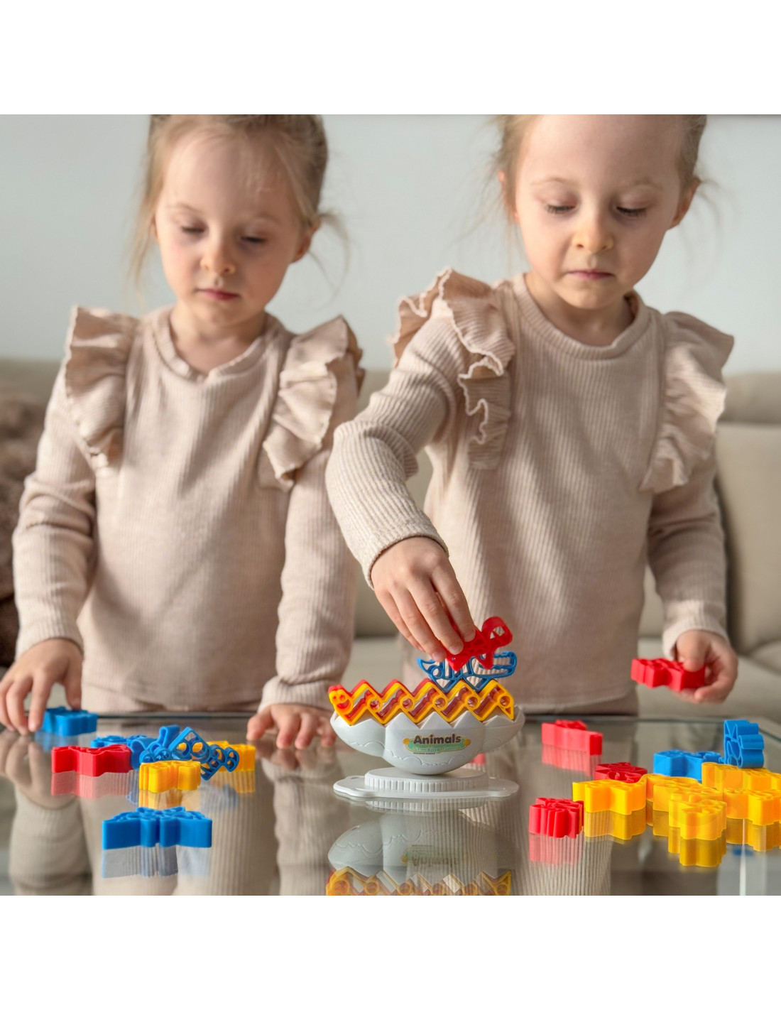 - Stack the Animals: Players take turns placing animal-shaped blocks on a balancing stone, trying to keep the entire structure balanced.