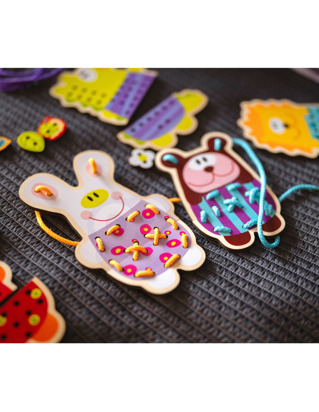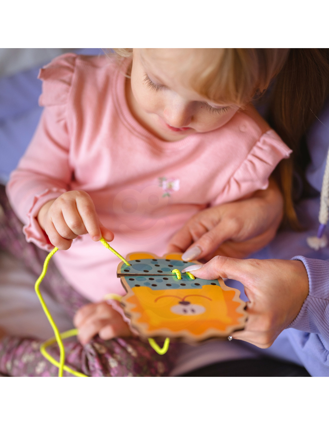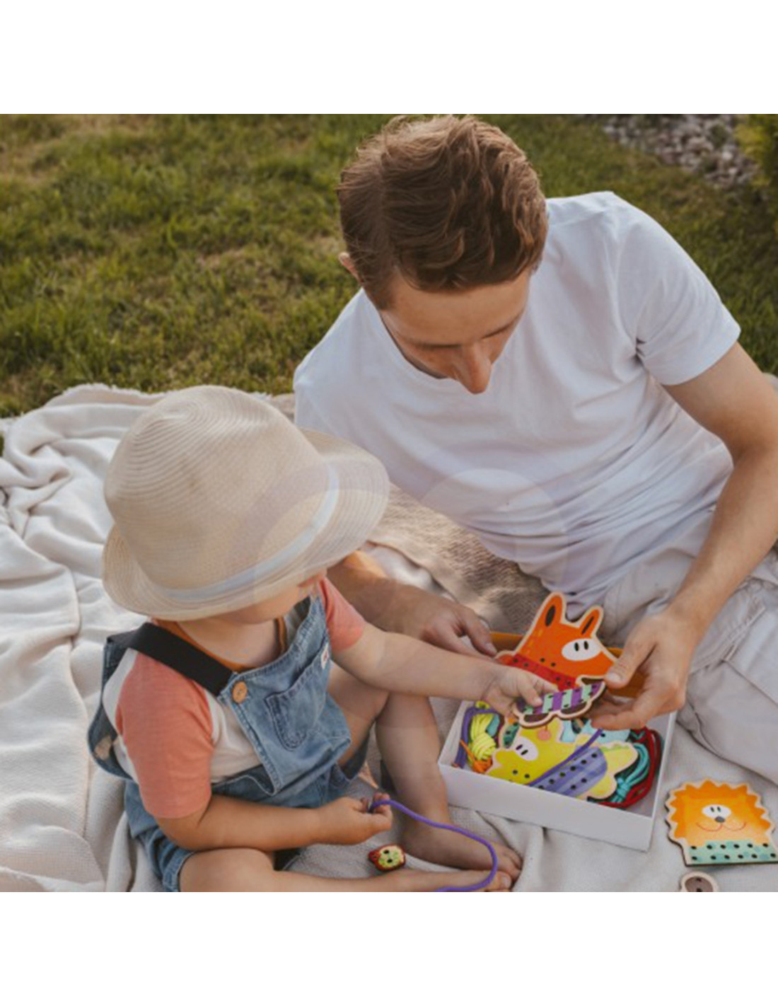 - - Motor skills – threading and manipulating the elements supports the development of small muscles in the hands and fingers, preparing the child for learning to write