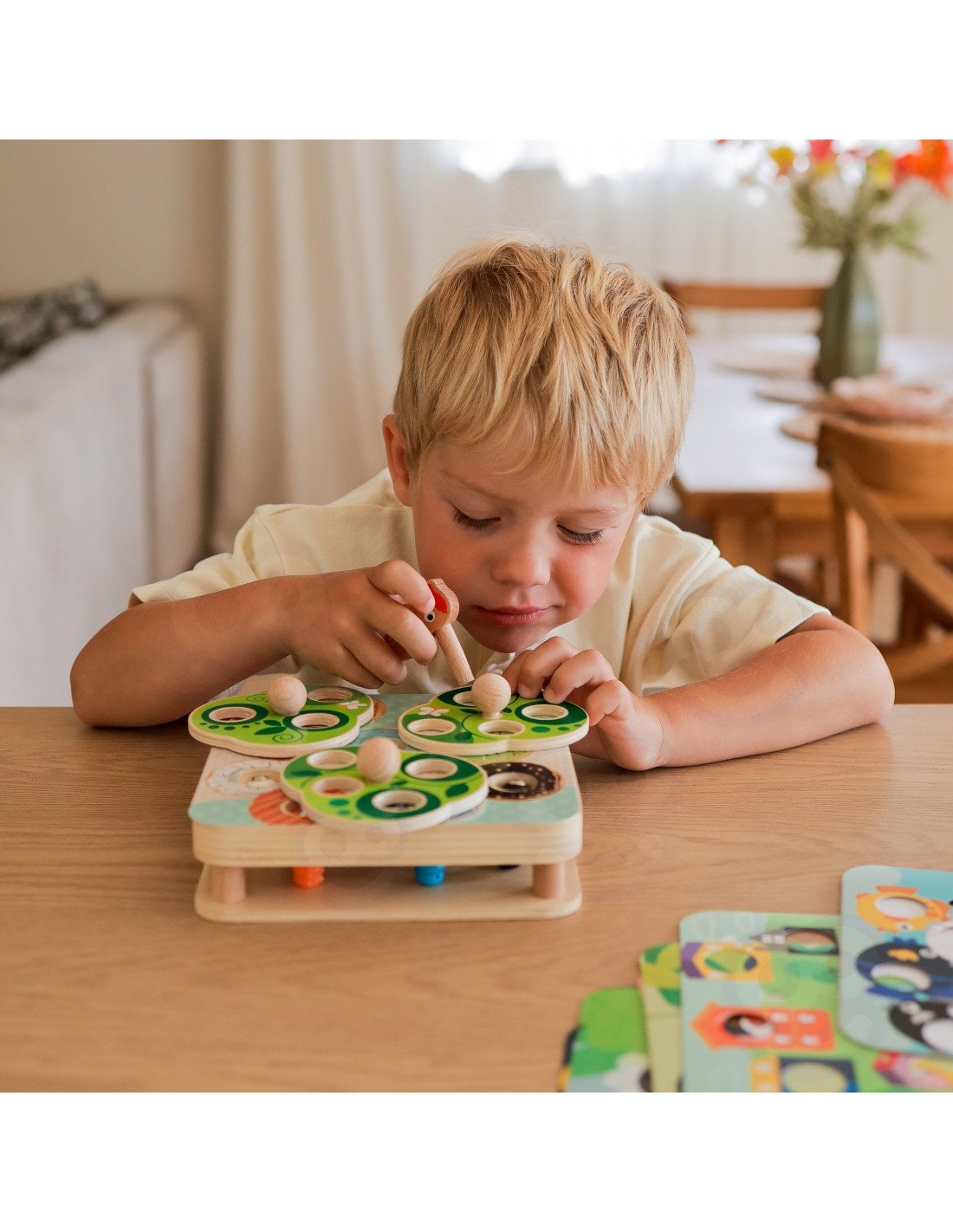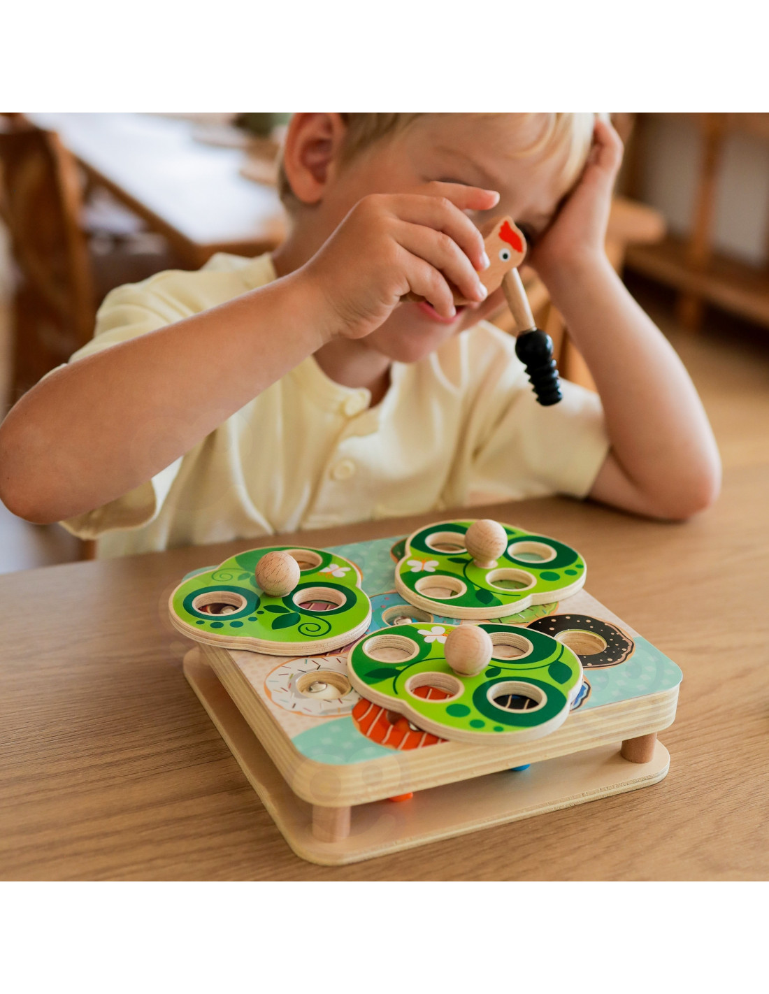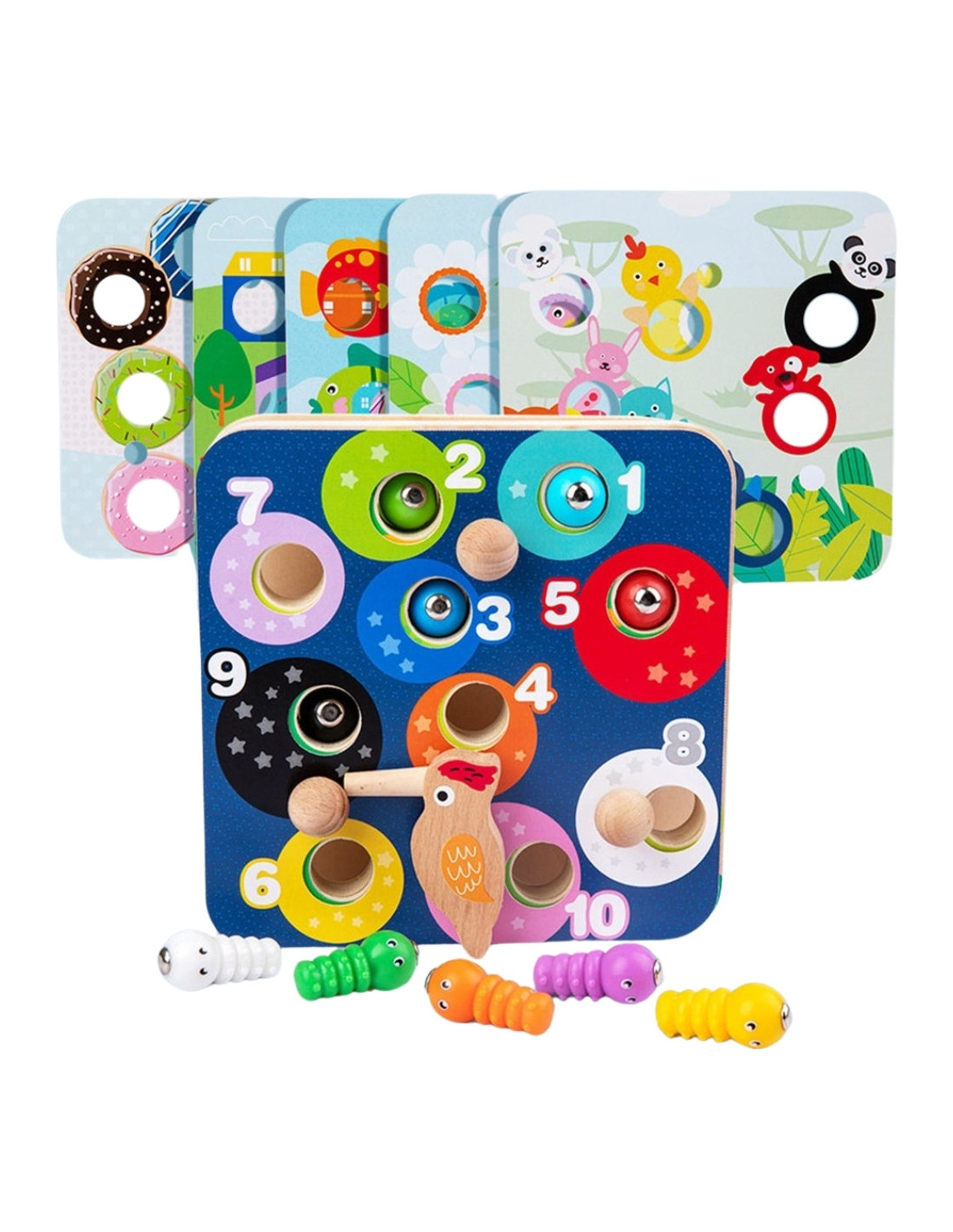 The "Bird and Bugs" game from TOOKY TOY is an educational toy that's tons of fun and supports child development! First, your little one uses the bird with its magnetic beak to pull bugs from the board, and then they can put them back in the hole – practicing precision by aiming the balls into the holes according to the pattern on the card. A great option for longer, less-bored play!