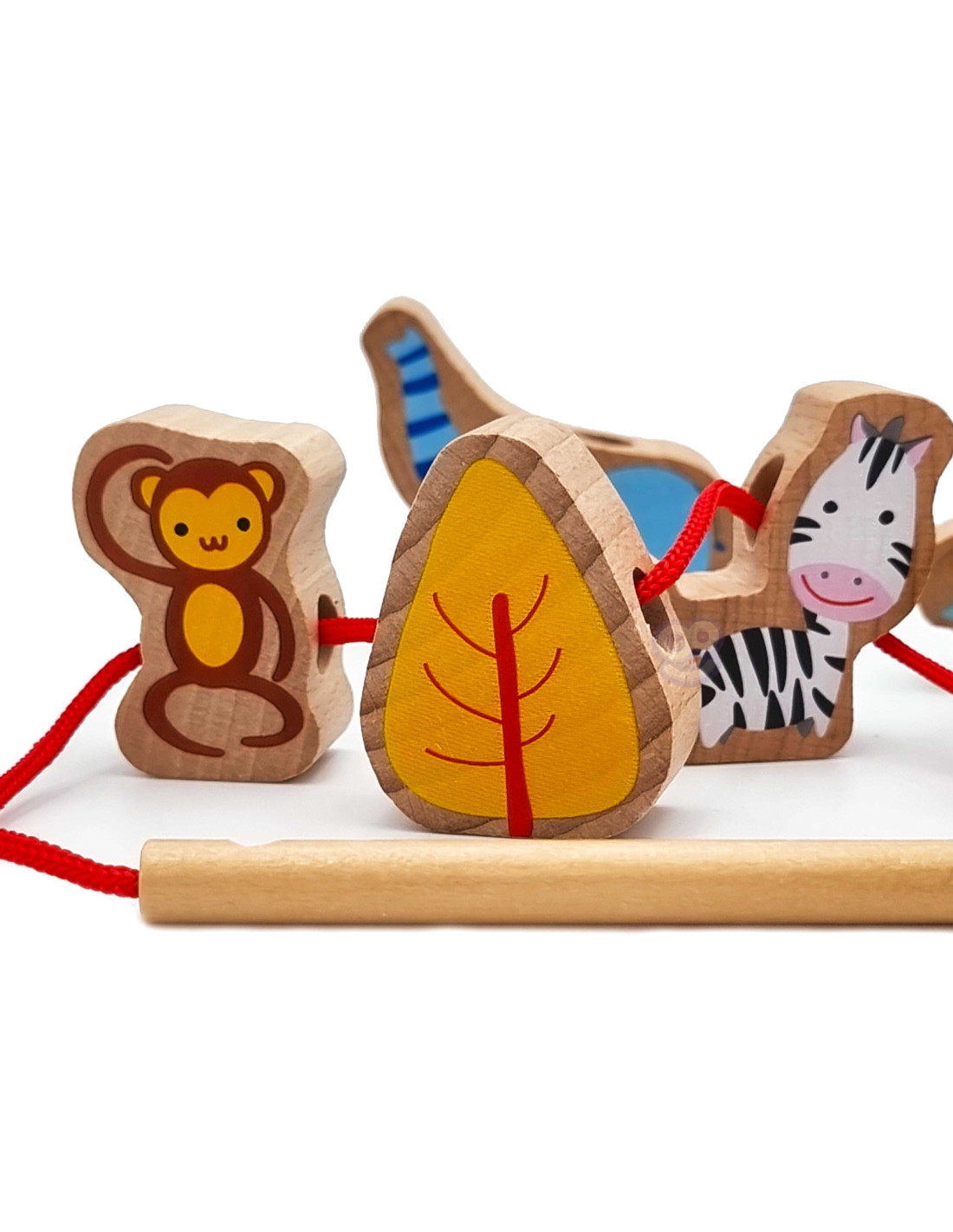 CLASSIC WORLD Wooden Threading Blocks ZOO 13 pcs.
