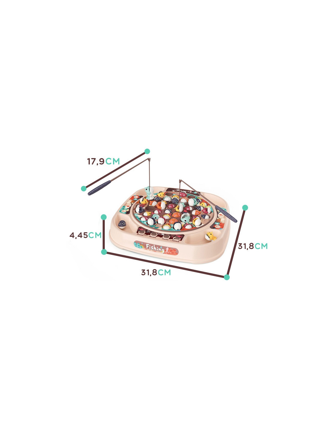 Zestaw do łowienia rybek od renomowanej marki WOOPIE to świetna gra dla całej rodziny. Pamiętajcie, tylko by się skupić, ponieważ rybki są sprytne i nie zawsze dadzą się złapać na haczyk. Zręcznościowa gra rodzinna dostarczy mnóstwo uśmiechu i radości, a przy tym poprawi refleks i koncentrację wszystkich zawodników. Jesteśmy pewni, że ta klasyczna gra wywoła wiele emocji, a także nauczy dzieci zasad zdrowej rywalizacji. Zabawka wędkarska została zaprojektowana w jasnym kolorze, który z łatwością przyciągnie wzrok dzieci. Zestaw posiada cztery pojemniki na złowione rybki. Po włączeniu przełącznika deska wędkarska będzie się powoli obracać w rytm muzyki, a część rybek otworzy pyszczek i wtedy będziemy mieli szansę na ich złowienie. Zestaw wykonany z wysokiej jakości materiału.