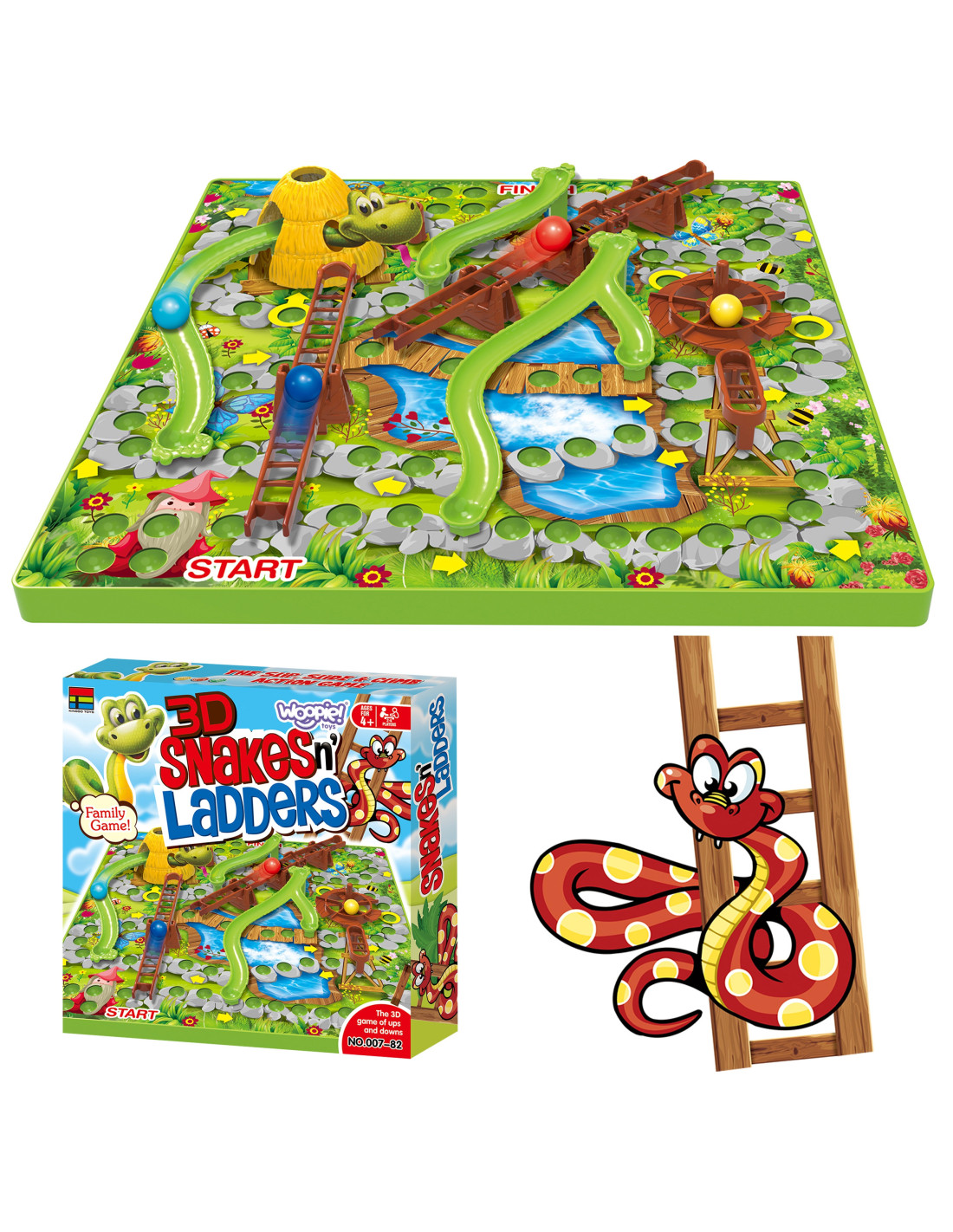 LADDERS AND SNAKES is a popular and wonderful game for children. The game set includes a board on which you move a special ball. Each player has a different colored ball. After rolling the dice, they move as many times as they rolled. When the ball lands on a special spot, it can move forward using the ladder or down if you step on the snake. The board is 3D, so when you land on a special spot, the ball moves around the board. The game is perfect for family evenings. It develops your child's mind, hand-eye coordination, and logical thinking.