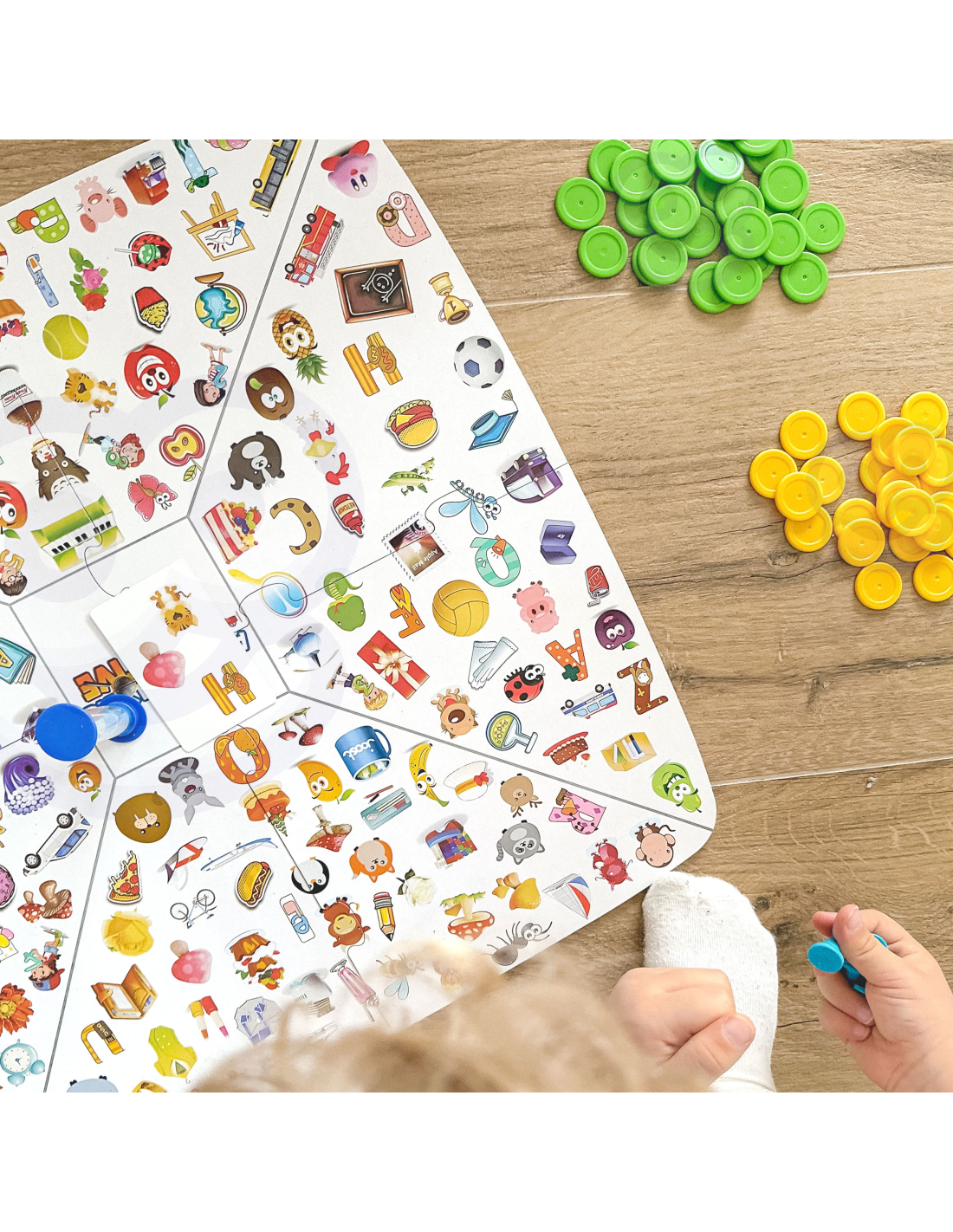 - The second way to play is to distribute all the coins to the players. They all start searching at the same time. The player who finds the most patterns wins.