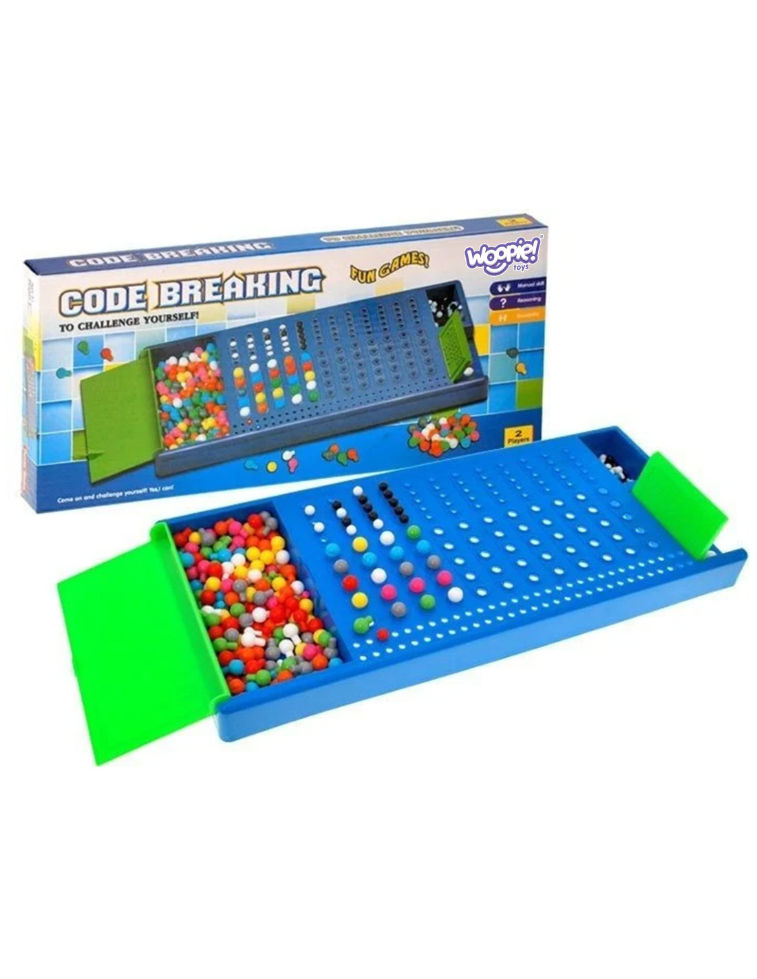 The Crack the Code Puzzle Game from WOOPIE is a board game for two players , with one player having to guess a hidden code in as few attempts as possible. This fun, skill-based game stimulates a child's development on several levels simultaneously . It improves color recognition , hand-eye coordination , and communication skills. One of the most effective ways to develop interpersonal skills in children is to play various games with loved ones.