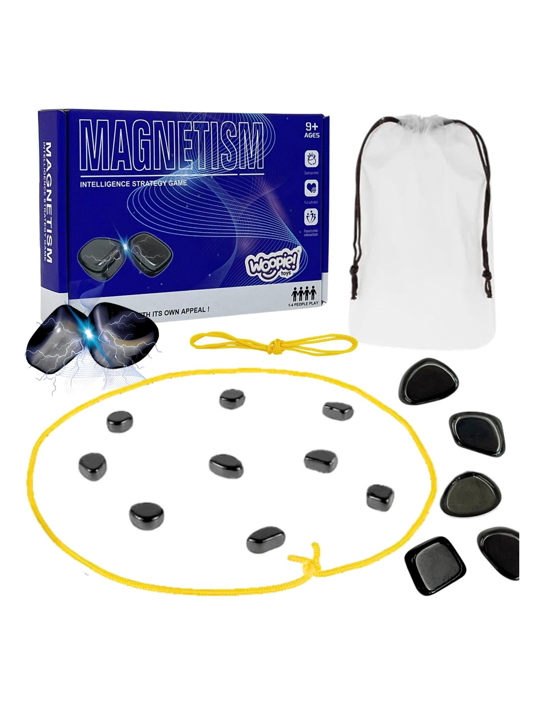 The fantastic Magnetic Pebbles game from Woopie will provide hours of family fun for both children and parents. Every move requires strategic thinking , and the slightest misstep can yield surprising results . Immerse yourself in the world of magnets and test your skills in this intelligent game that combines elements of competition with the science of magnetism. While seemingly simple, it requires players to be clever, patient, and predictive . Magnetic elements add incredible charm to the game, and every move carries risks that can completely change the course of the game. This game is a great opportunity to understand the principles of physics while having fun with family and friends. The main goal is to remove all the magnets from your hand as quickly as possible. However, the path to achieving this is full of unexpected twists and turns.