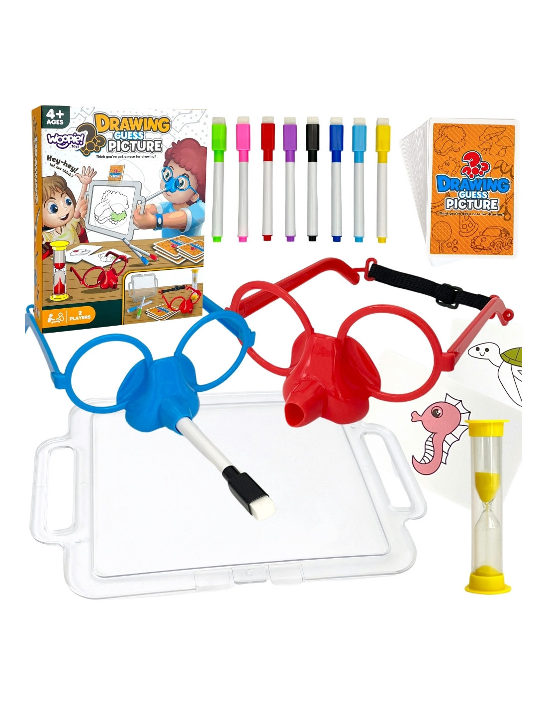 Have you ever imagined drawing solely with your nose? Thanks to the amazing game "Draw and Guess the Picture" from WOOPIE, you'll be able to do just that, because it's your job! Put on special glasses with a marker, and draw the drawn picture on the board in front of you – it's the only way for your team to guess the words. Time is short, so hurry, because the hourglass is ticking!