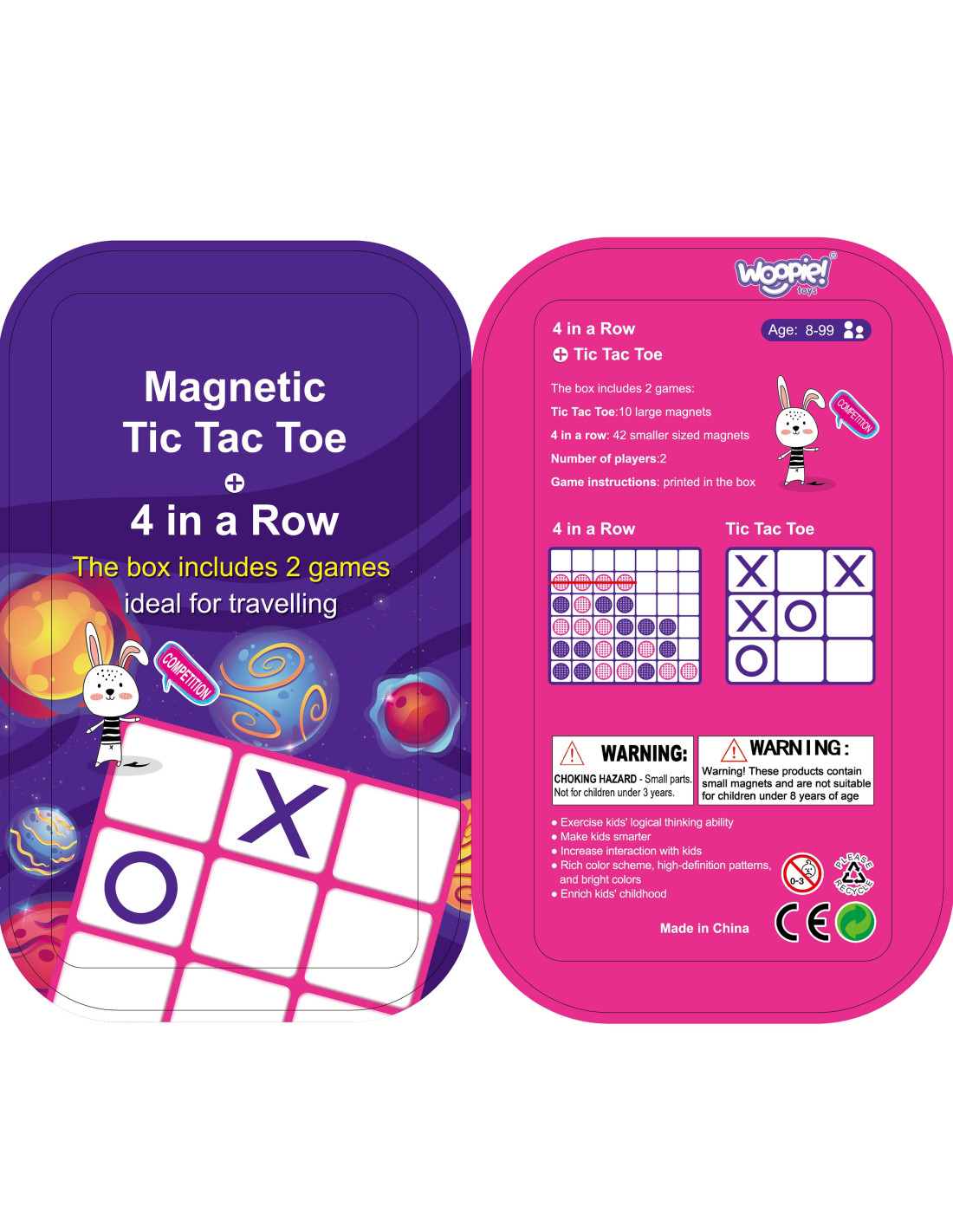 A classic game of tic-tac-toe, in a travel version. Players take turns marking squares, aiming to occupy three squares in a row while preventing their opponent from doing the same. A square can be occupied by a single player and remains in possession throughout the game.
