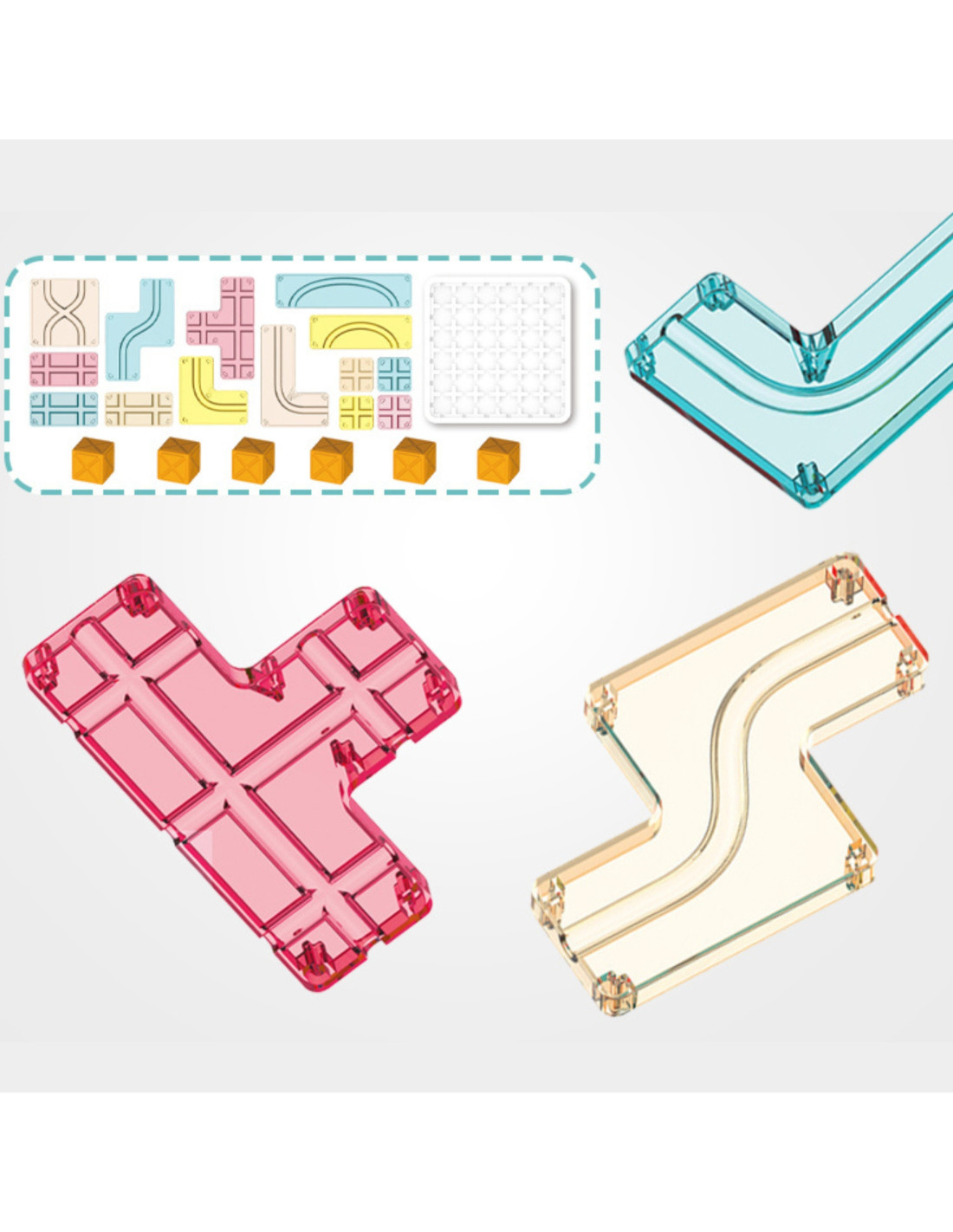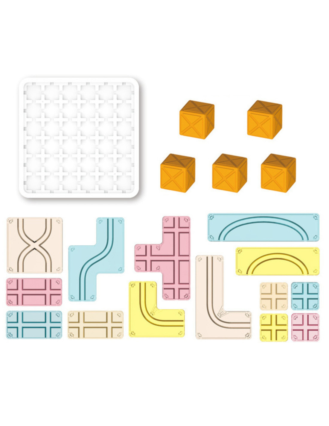 Discover a world of logical challenges with Woopie's Creative Board Game ! This innovative puzzle is the perfect way to combine fun with the development of key skills . With a variety of transparent geometric elements and creative cubes, your child will need to use their wits and spatial imagination to create the correct paths. It's not only great fun, but also an effective tool for training the brain, developing logical thinking, and creative problem-solving. Ready for a challenge?