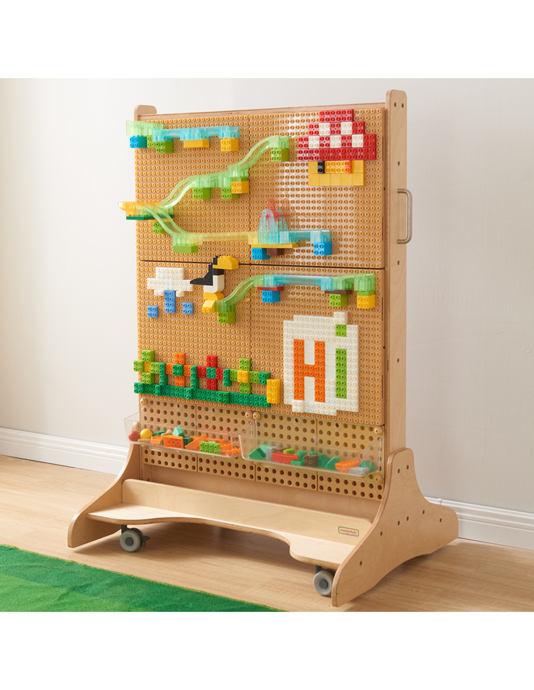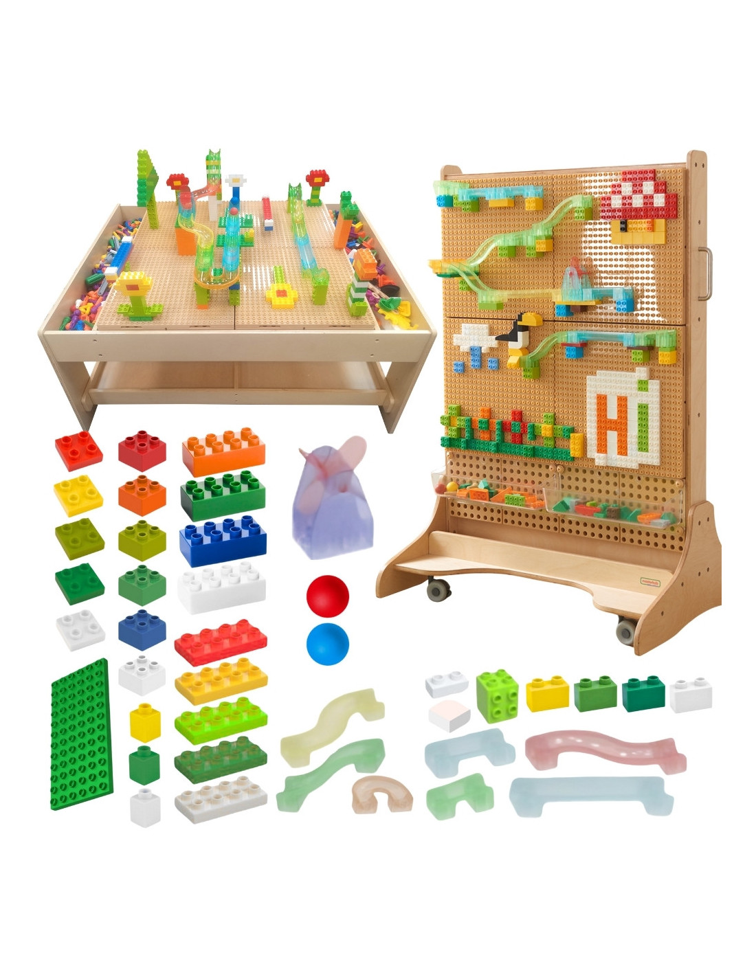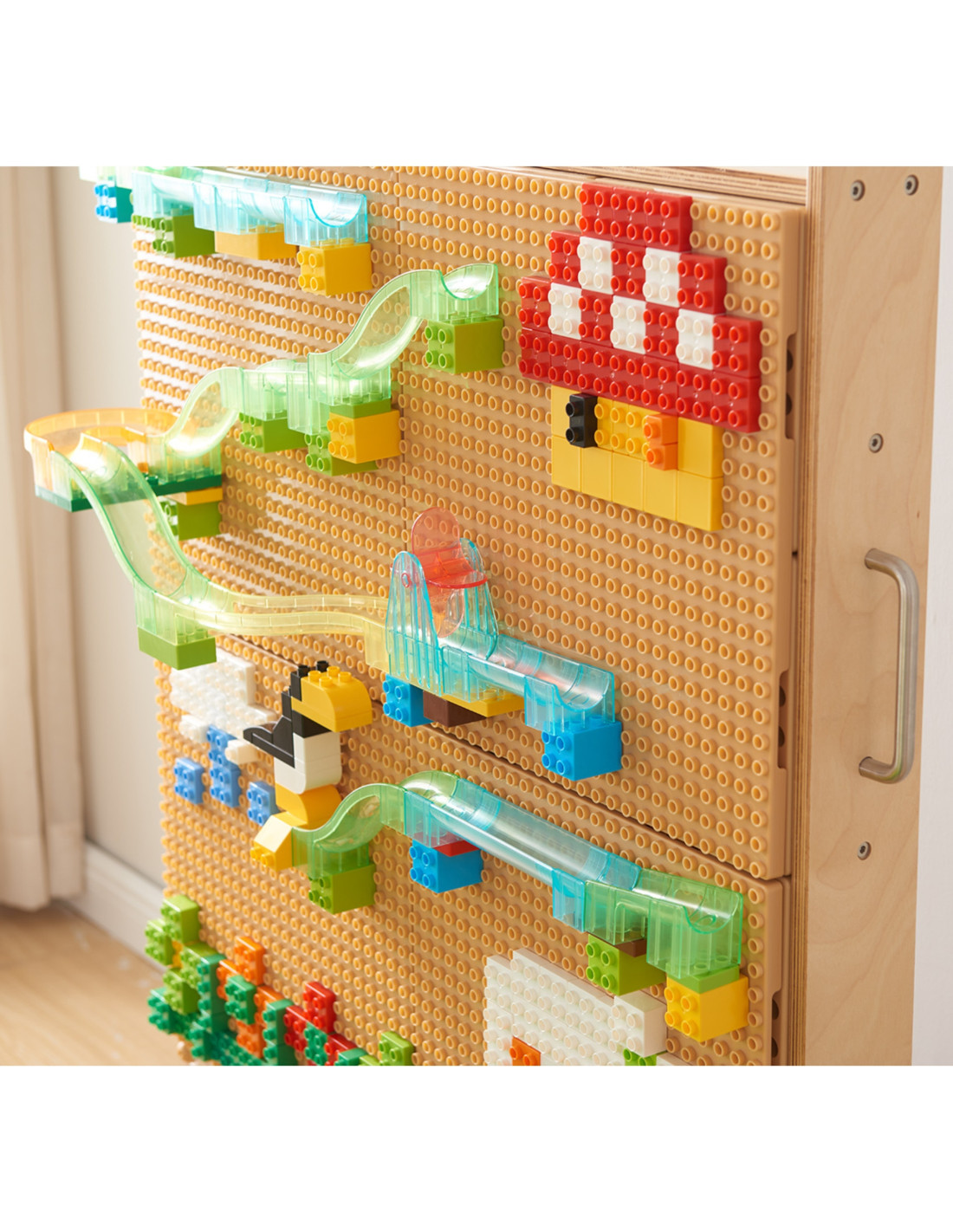 Masterkidz building blocks are a creative set that allows children to freely build colorful patterns, pictures, and ball runs. Thanks to the special construction of the blocks, little ones can easily press them onto the board, creating their own compositions and developing their imagination. The set encourages independent play, but it's also great for collaborative creations with peers or adults.