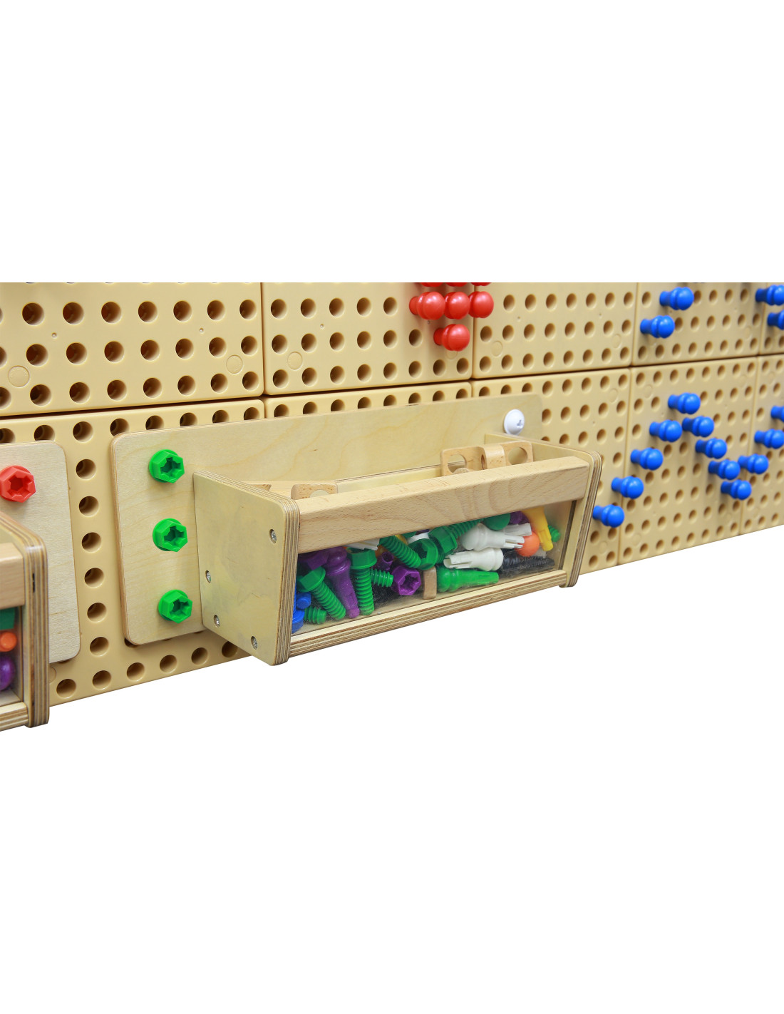 - - The container is mounted directly to the STEM wall using Masterkidz screws, so even a child can mount it anywhere on the board.