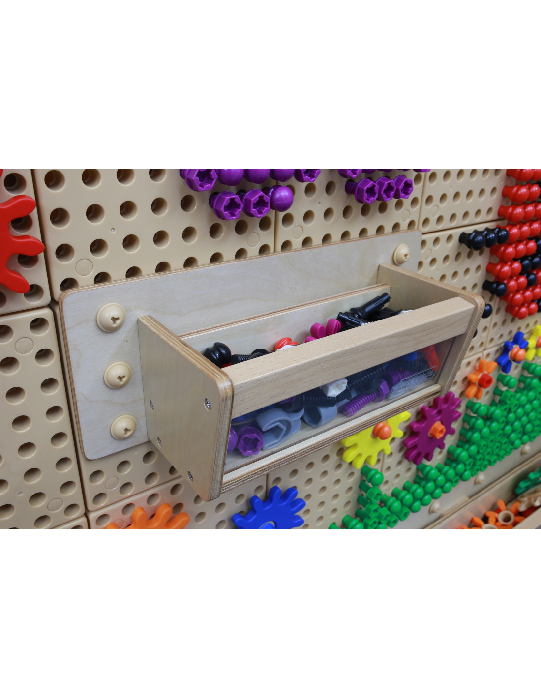 - - Pojemniczek jest montowany za pomocą śrubek Masterkidz bezpośrednio do ścianki STEM, dzięki czemu nawet dziecko poradzi sobie z montażem w dowolnym miejscu na tablicy.