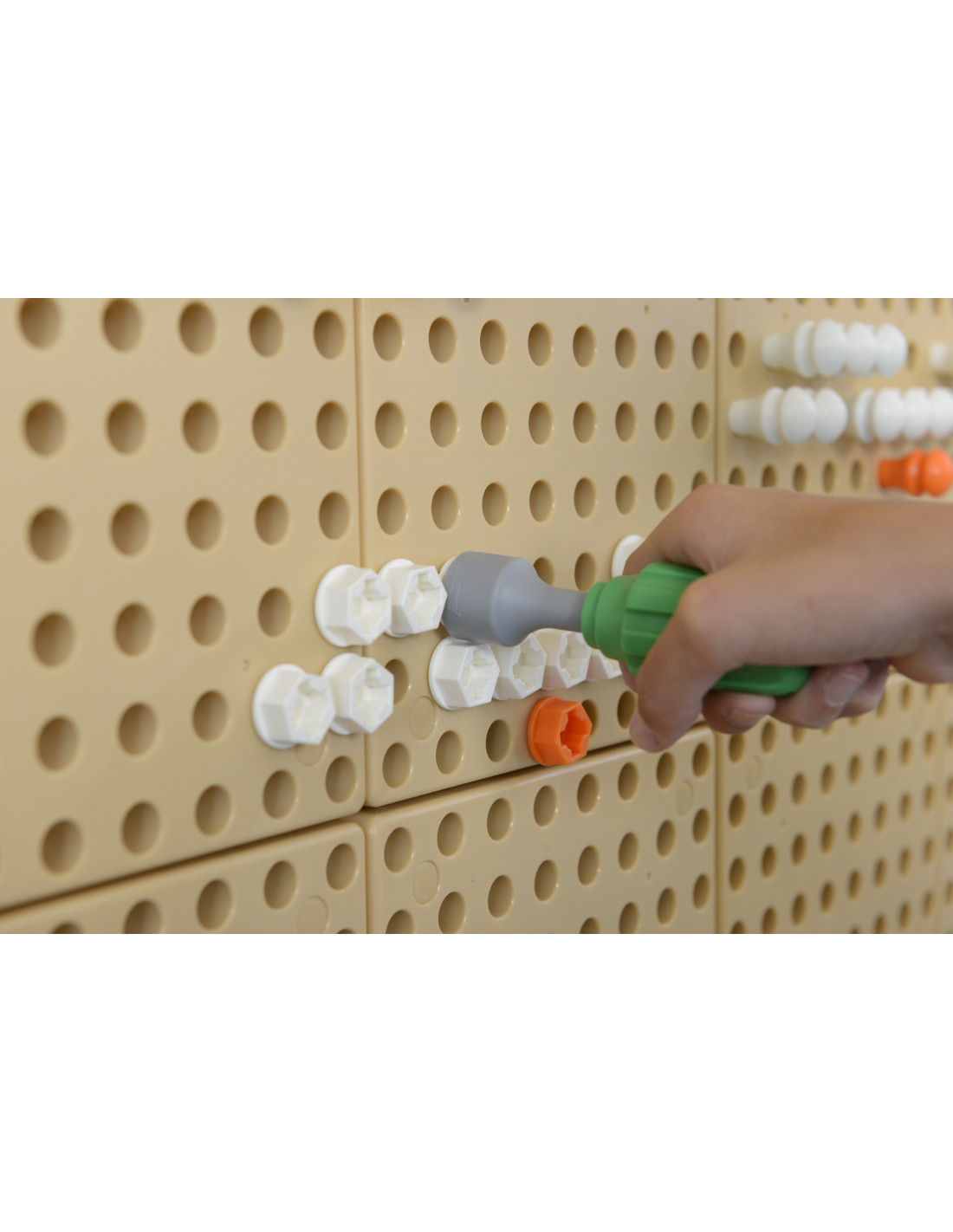 - - Na Tablicy Naukowo-Kreatywnej Masterkidz STEM, używając specjalnego zestawu narzędzi, dzieci mogą wkręcać śruby, montować różne elementy, oraz majsterkować do woli. Do zabawy niezbędna będzie paczka śrub Masterkidz.